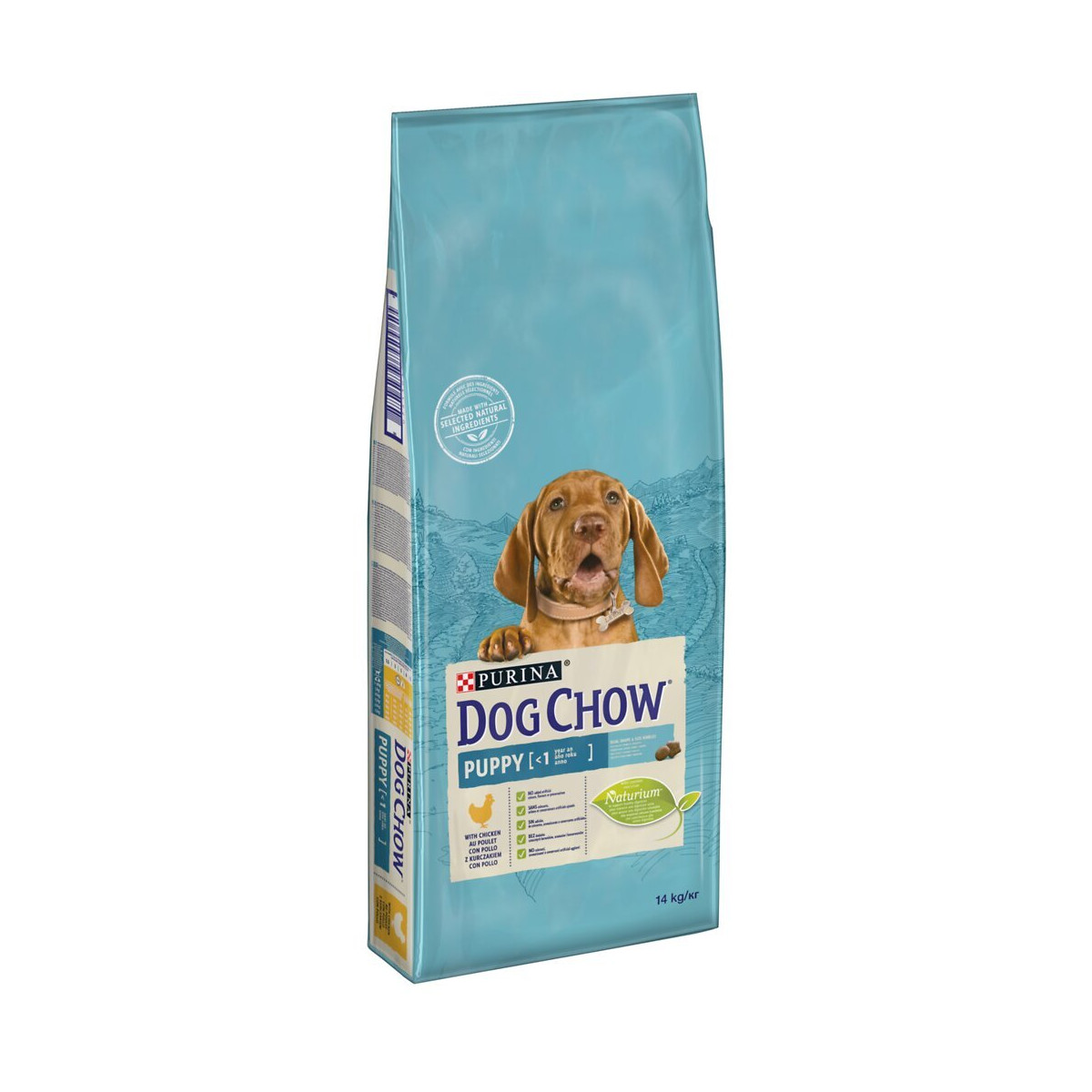 Croquettes chiot DOG CHOW Chien Puppy au Poulet - 14 KG - Croquettes pour chiot ALIMENTATION NATURELLEMENT ADAPTEE Alimentation 100% complète et équilibrée adaptée à votre chiot. Avec des ingrédients naturels sélectionnés et sans colorants, arômes et conservateurs artificiels ajoutés. DIGESTION SAINE grâce à NaturiumTM, une combinaison spécifique de fibres d’origine naturelle et d'un prébiotique naturel. Deux tailles de croquettes pour une mastication plus lente DEFENSES NATURELLES RENFORCEES Avec des antioxydants pour soutenir les défenses naturelles.Spécifications techniques