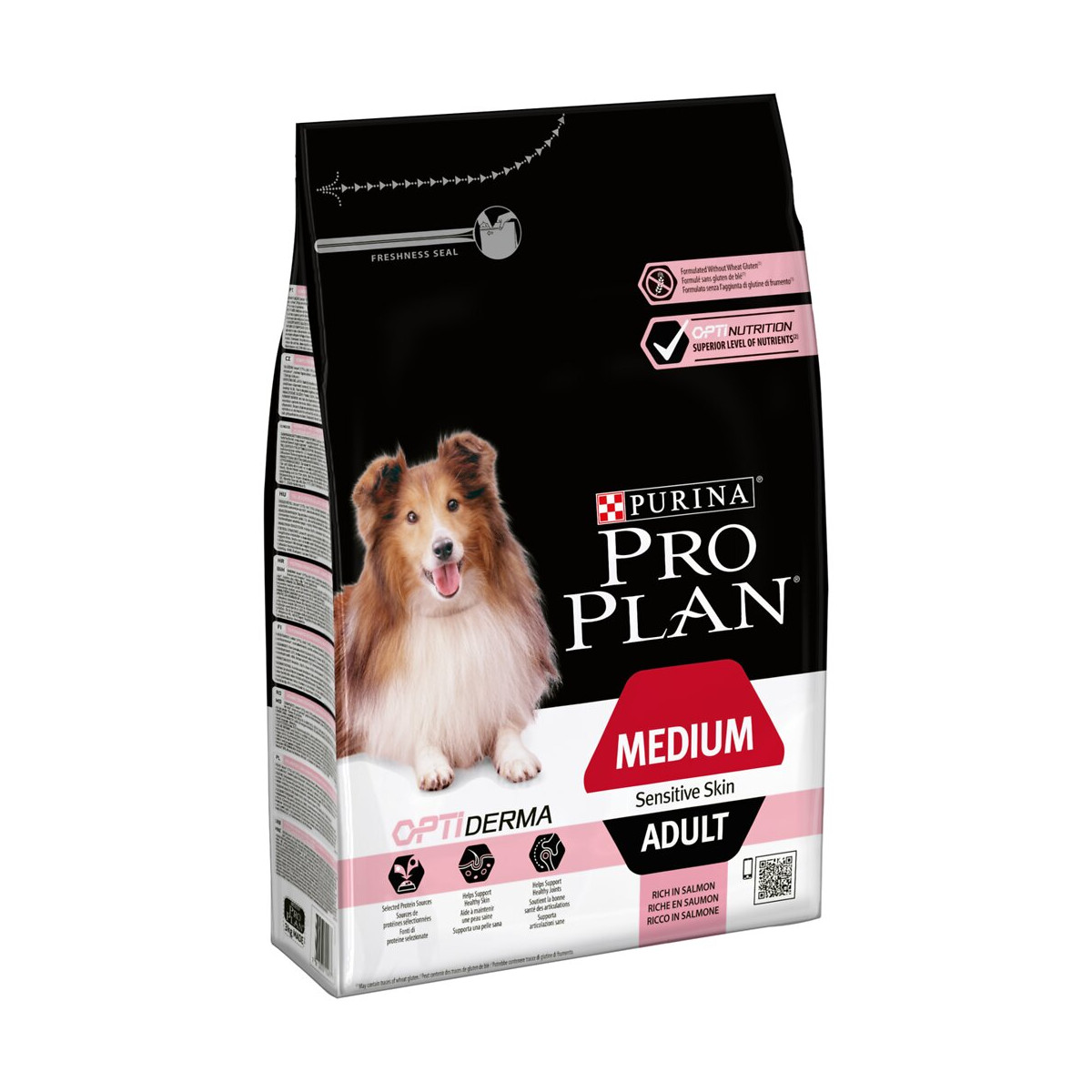 Croquettes au saumon Pro Plan Medium Adult Sensitive Skin pour chien adulte. Développée par nos vétérinaires et nutritionnistes, la formule Pro Plan OPTIDERMA fournit une nutrition adaptée qui aide à soutenir la peau sensible des chiens adultes. La formule OPTIDERMA contient une combinaison spécifique de nutriments cliniquement prouvée pour aider à maintenir une peau saine et un beau pelage ainsi que des sources de protéines sélectionnées pour aider à réduire les réactions cutanées associées à des sensibilités alimentaires. Aliment complet pour chiens adultes. Cliniquement prouvées pour aider à maintenir une peau saine, ces croquettes sont une source de protéines sélectionnées pour les chiens sensibles. Une combinaison de nutriments essentiels et des protéines de saumon de haute qualité pour aider à soutenir la bonne santé des articulations. Contenance : 3 kg. Cliniquement prouvé pour aider à maintenir une peau saine Soutient la bonne santé des articulations Contient des protéines de saumon de haute qualité. Sans colorants ajoutés , antioxydants d'origine naturelle.Spécifications techniques