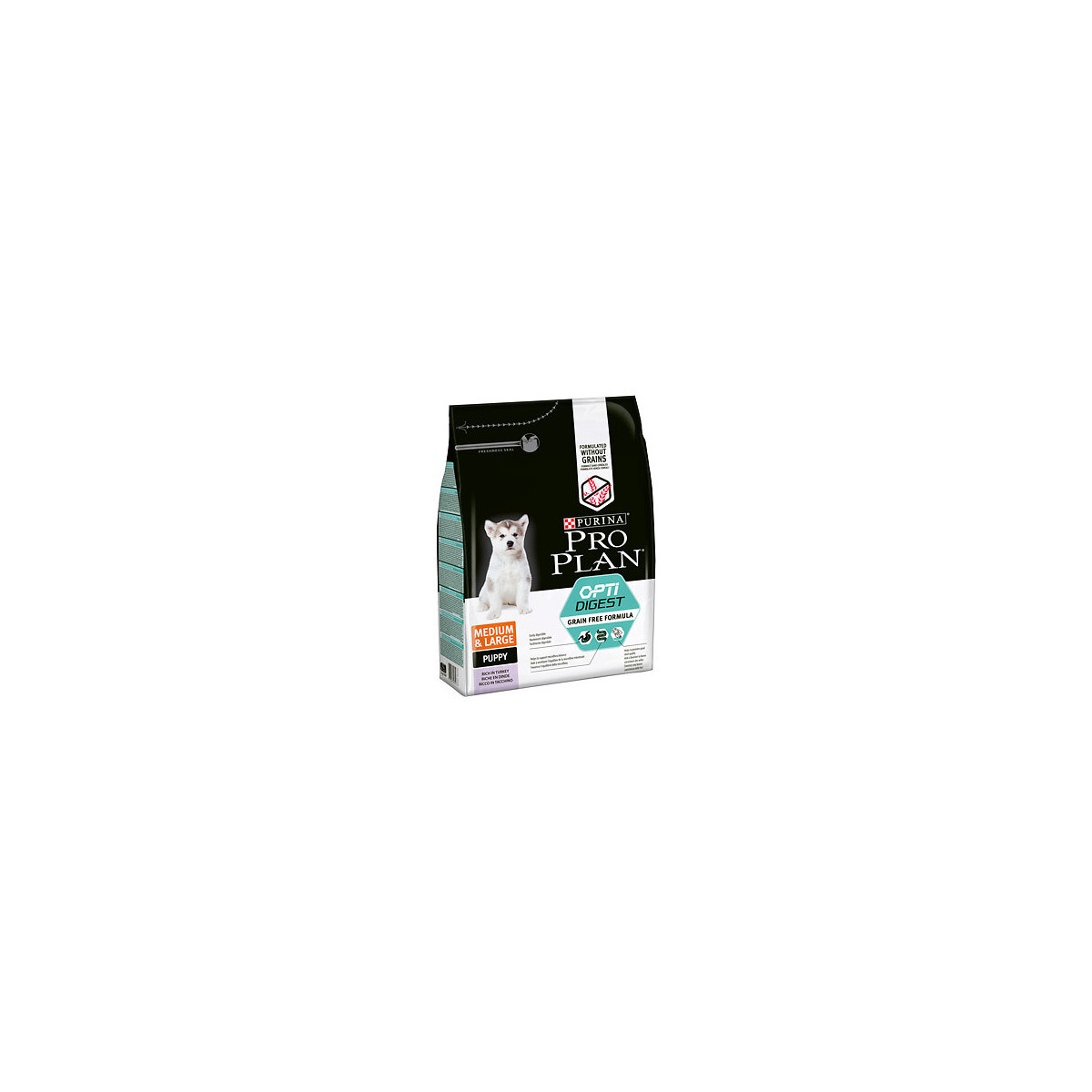 La formule PURINA® PRO PLAN® Grain Free est un Aliment complet et équilibré pour chiots de moyenne et grande taille avec une digestion sensible. Convient également aux femelles en Gestation ou en lactation. Contient une formule sans céréales avancée facilement digestible, et un niveau supérieur de nutriments, vitamines et minéraux for des os, des dents et des défenses naturelles plus forts. Il contient également des prébiotiques pour une meilleure santé intestinale et une Microflore itnestinale en bonne santé. Formulé avec des morceaux de dinde de haute qualité, riche en protéines pour des muscles et des organes vitaux en bonne santé, et du manioc pour soutenir l'énergie et la bonne digestion.