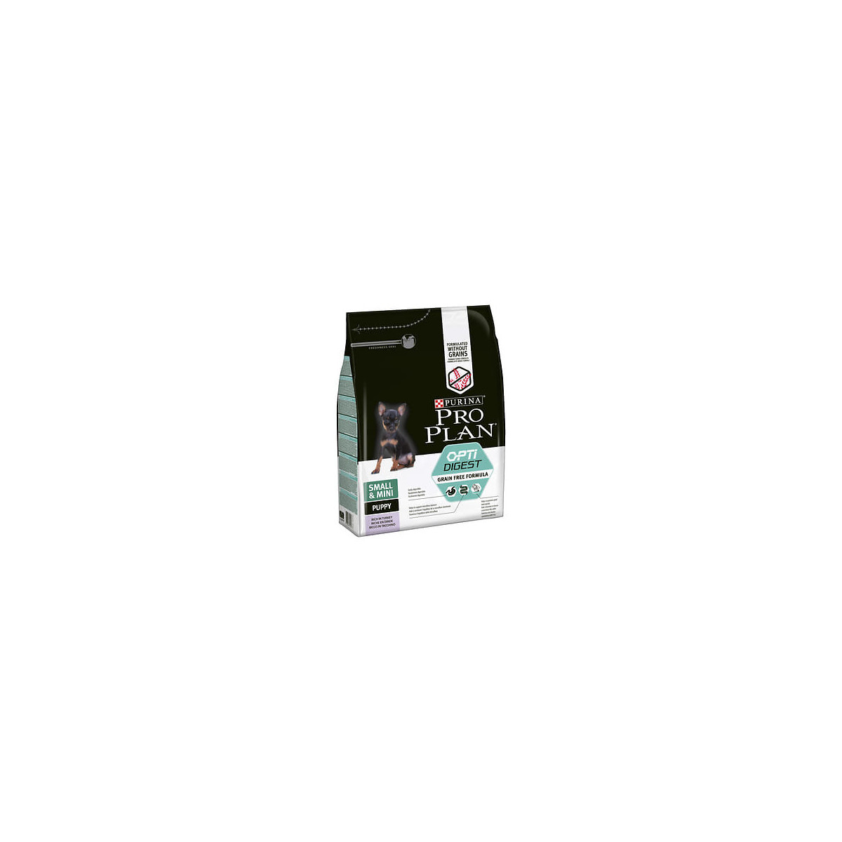 La formule PURINA® PRO PLAN® Grain Free est un Aliment complet et équilibré pour chiots de petite et très petite taille avec une digestion sensible. Convient également aux femelles en Gestation ou en lactation. Contient une formule sans céréales avancée facilement digestible, et un niveau supérieur de nutriments, vitamines et minéraux for des os, des dents et des défenses naturelles plus forts. Il contient également des prébiotiques pour une meilleure santé intestinale et une Microflore itnestinale en bonne santé. Formulé avec des morceaux de dinde de haute qualité, riche en protéines pour des muscles et des organes vitaux en bonne santé, et du manioc pour soutenir l'énergie et la bonne digestion.