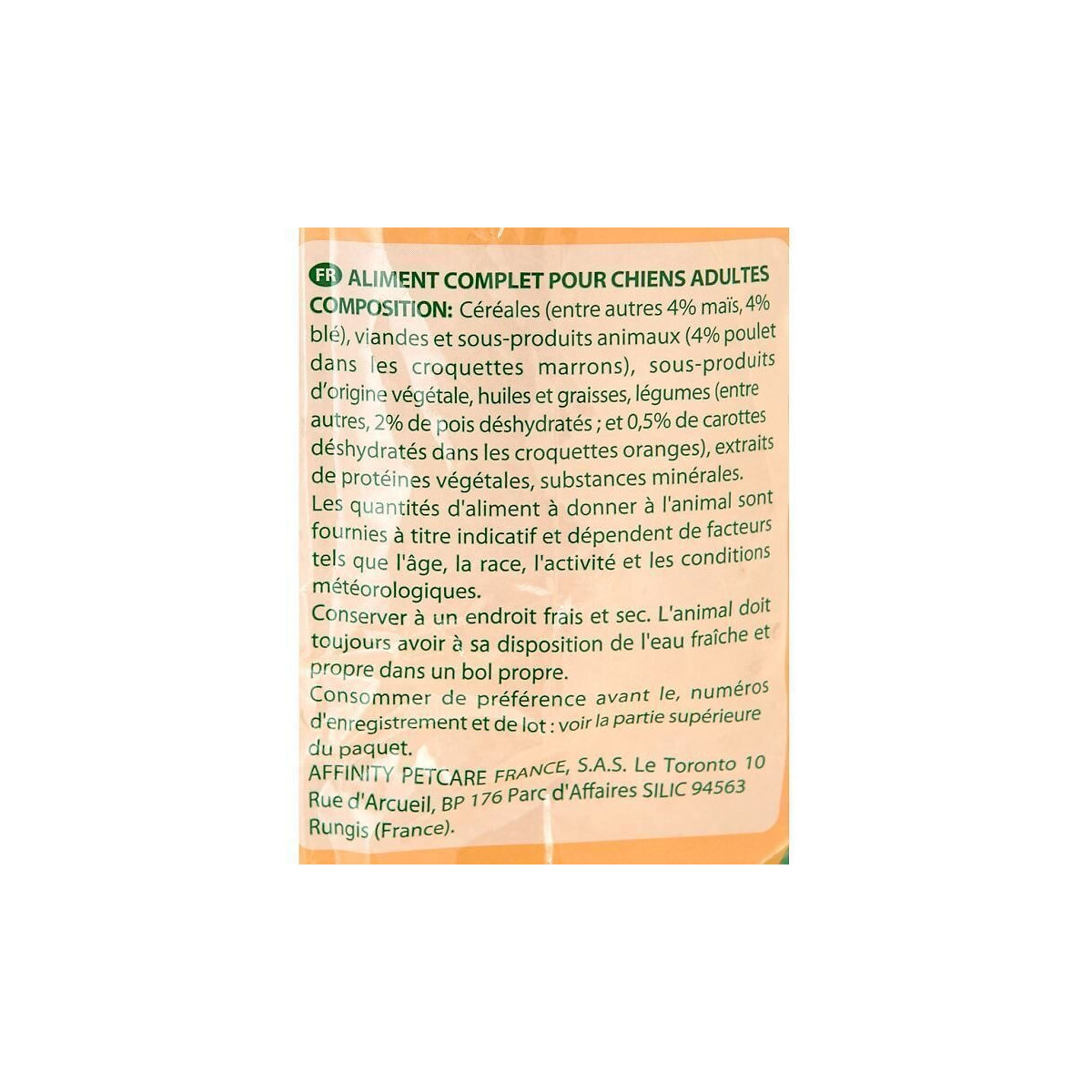 Croquettes a la volaille et aux légumes - Composition : céréales, viandes et sous-produits animaux, sous-produits d´origine végétale, huiles et graisses, légumes, extraits de protéines végétales, substances minérales - 15kg - Pour chien adulte.Spécifications techniques