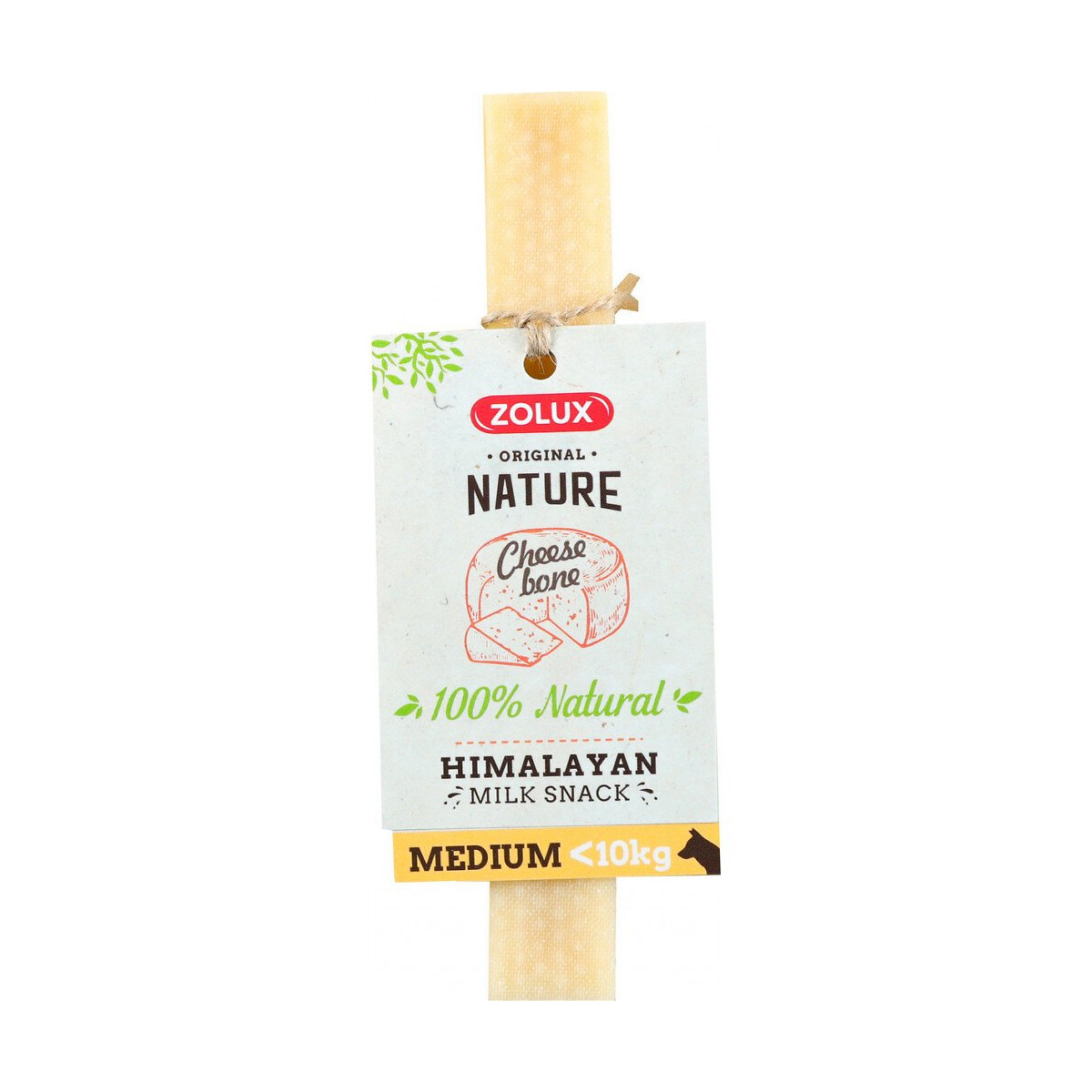 1 Friandise au fromage. Cheese bone medium pour chien . La taille Small est spécialement conçue pour les chiens de moins de 10kg. Dimensions : Longueur 14 x profondeur 2.4 x hauteur 2.4 cm. Les friandises Cheese Bone sont composées uniquement de lait avec une pointe de sel, rien d'autre : du lait entier frais récolté chaque jour auprès de producteurs qui répondent au cahier des charges de la Qualité Filière Lait. Le lait est transformé en fromage, puis pressé et séché pendant plus de 3 mois. Très appétente, elle occupe sainement l'animal tout en contribuant à son hygiène dentaire. Afin de lui offrir un maximum de satisfaction et de prolonger la durée d'utilisation du produit, il est indispensable de choisir la bonne taille de Cheese Bone en fonction du poids du chien. 1 Friandise au fromage. Cheese bone medium pour chien de - 10 kg. Elaborée selon la recette traditionnelle de l'Himalaya, Cheese Bone est une friandise pour chiens à mâcher au fromage 100% naturelle, sans additif, sans conservateur, sans colorant, sans gluten, pauvres en lactose, riches en protéines et calcium. Aujourd'hui ces friandises à mâcher sont fabriquées artisanalement dans une usine européenne selon la recette traditionnelle. Les friandises Cheese Bone sont composées uniquement de lait avec une pointe de sel, rien d'autre : du lait entier frais récolté chaque jour auprès de producteurs qui répondent au cahier des charges de la Qualité Filière Lait. Le lait provient de vaches de pâturage. Le lait est transformé en fromage, puis pressé et séché pendant plus de 3 mois. Très appétente, elle occupe sainement l'animal tout en contribuant à son hygiène dentaire. Afin de lui offrir un maximum de satisfaction et de prolonger la durée d'utilisation du produit, il est indispensable de choisir la bonne taille de Cheese Bone en fonction du poids du chien. Les friandises Cheese Bone entrent dans le nouveau concept éco-responsable. L'objectif est de limiter les emballages et suremballages de ce produit 100% naturel éco-conçu : Emballage primaire minimaliste et recyclable : une petite étiquette cartonnée avec une cordelette en jute 100% naturelle. Dimensions : Longueur 14 x profondeur 2.4 x hauteur 2.4 cm. Poids net : de 38 à 45g. suivant le choix de l'article Composition : Lait et composants laitiers (99,99%), sel marin (0,01%). Composition analytique : Protéine brute 60%, Matière grasse 18%, Glucide 6,80%, Cendre brute 4,50%, Cellulose 0,50%. Photo non contractuelle, car il y a plusieurs vendeurs sur une même fiche produit.Spécifications techniques