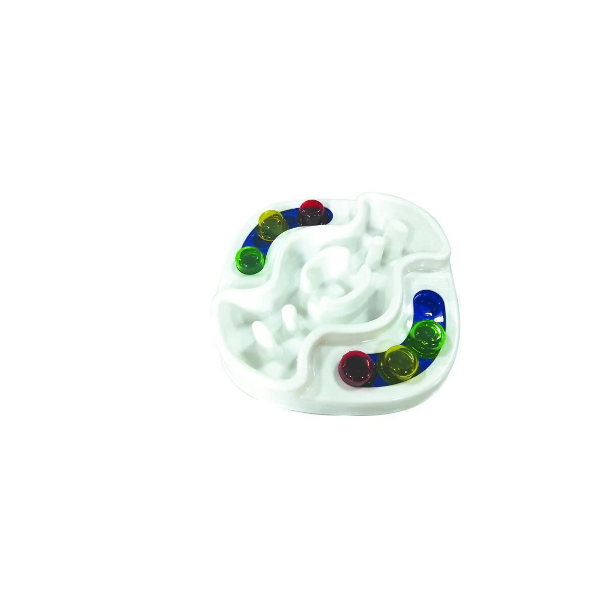 Gamelle anti-glouton Favorise le jeu et la strategie de votre compagnion durant son repas. on oeut y mettre de l'alimentation humide ou des croquettes. L'objectif est de le ralentir dans sa consommation Capacité : 0.5kg - 500 ml Utilisable pour tous les agesSpécifications techniques