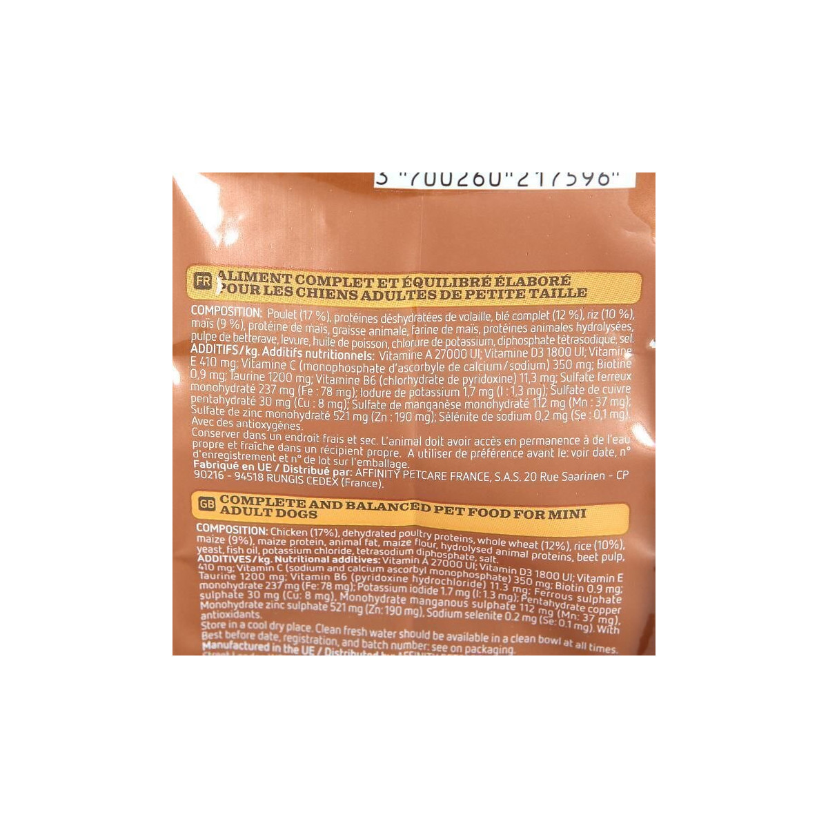 Lot de 1 - Croquettes Mini Adult au poulet, au riz et aux céréales - Petite race - Pour chien adulte 1 a 8 ans de 1 a 10kg - 7,5kg.Spécifications techniques