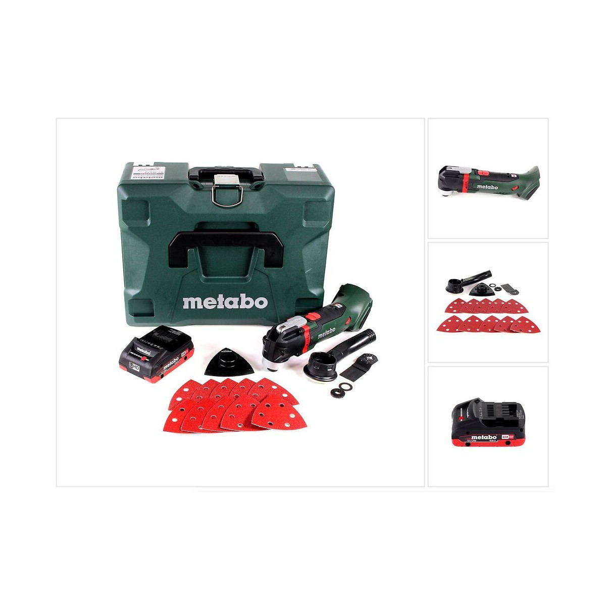 Contenu de la livraison: - 1x Metabo MT 18 LTX Outil multifonctions sans fil 18V (613021840) - 1x Lame de scie plongeante 32 mm HCS (bois) - 1x Plaque de ponçage triangulaire 93 mm avec velcro - 5x Feuilles abrasives adhésives 93 mm P 80 - 5x Feuilles abrasives adhésives 93 mm P 120 - 1x Adaptateur d'aspiration - 1x Adaptateur multiple - 1x Coffret de transport - 1x Batterie Metabo LiHD 4,0 Ah - sans chargeur Description du produit: L'outil multifonctions MT 18 LXT de Metabo a une haute performance comparable à une alimentation. Une grande variété de travaux peut être effectuée, que ce soit le meulage, le sciage, le grattage ou le râpage. Une grande variété d'accessoires est possible grâce au support OIS et Starlock. Grâce à Metabo Quick, un changement rapide sans outil est facilement possible. La conception mince et la poignée souple antidérapante offrent une adhérence optimale, la double LED extra brillante assure une meilleure vue de la pièce. L'aspiration est possible en utilisant l'adaptateur d'aspiration inclus dans la livraison. La vitesse reste constante même sous de fortes charges grâce à la combinaison du grand angle d'oscillation de 3,2 ° et de l'électronique VTC. L'avantage spécial de ce chargeur est son aptitude à charger toutes les batteries des partenaires CAS (Cordless Alliance System): Rothenberger, Edding, Fischer, Mafell, Collomix, Eibenstock, Eisenblättert, Haaga, Starmix, Steine, Rokamat, Birchmeier. Un chargeur pour tout. La compatibilité à 100% avec toutes les machines et chargeurs 18 V des partenaires CAS (Cordless Alliance System): Rothenberger, Edding, Fischer, Mafell, Collomix, Eibenstock, Eisenblättert, Haaga, Starmix, Steine, Rokamat, Birchmeier transforme la batterie en batterie pour tout. Spécifications techniques: Outil multifonction sans fil Metabo MT 18 LXT 18V Constructeur: 613021840 Tension de la batterie: 18 volts Nombre d'oscillations au ralenti: 7000 18000 Osc/min Angle d'oscillation gauche/droite: 1,6 ° Porte-outil: compatible OIS/Starlock Plaque de ponçage, dimension coin à coin: 93 mm Surface de broyage vibratoire: 7,5 m/s² Incertitude de mesure des vibrations K: 1,5 m/s² Grattage par vibration: 11,5 m/s² Incertitude de mesure des vibrations K: 1,5m/s² Sciage par vibration avec lame de scie plongeante: 13 m/s² Vibration avec lame de scie à segment: 11,6 m/s² Incertitude de mesure des vibrations K: 3 m/s² Emission sonore Niveau de pression acoustique: 77 dB (A) Emission sonore Niveau de puissance acoustique (LwA): 88 dB (A) Incertitude de mesure K: 3 dB (A) Batterie LiBo Metabo 4,0 Ah Constructeur: 625367000 Tension: 18 V. Capacité de la batterie: 4,0 Ah Compatibilité: partenaire CAS (Cordless Alliance System)