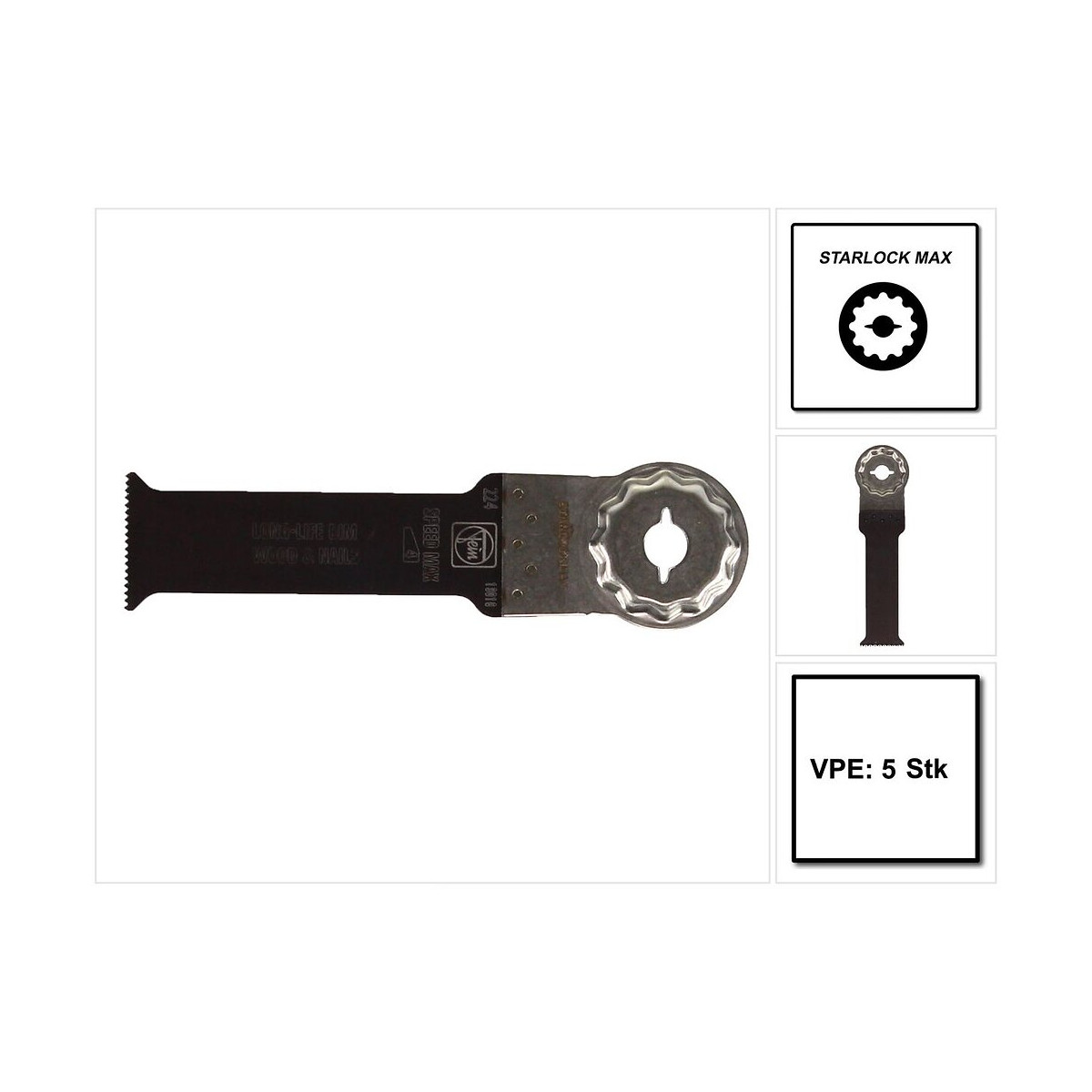 Contenu du paquet: - 5x Fein E-Cut Long-Life Starlock Max Lame de scie 90 x 32 mm ( 63502224230 ) BI-Metall Description du produit: Grâce au métal BI, la lame de scie E-Cut Long-Life est l'une des plus robustes. Il convient au bois, aux plaques de plâtre et aux matières plastiques. Impressionne par sa durée de vie exceptionnelle, ainsi que par la grande qualité de la coupe. Une insensibilité aux clous dans le bois jusqu'à un diamètre de 4 mm le distingue. La longueur XXL offre une profondeur d'immersion particulièrement élevée et des solutions spéciales, par exemple pour le remplacement des fenêtres. De plus, la coupe latérale offre une vitesse de coupe optimale et une bonne élimination des copeaux. Spécifications techniques: BI-Metall ( Composé de métal HSS et HCS ) Porte-outil: Starlock Max Longueur: 90 mm Largeur: 32 mm 5 pièces