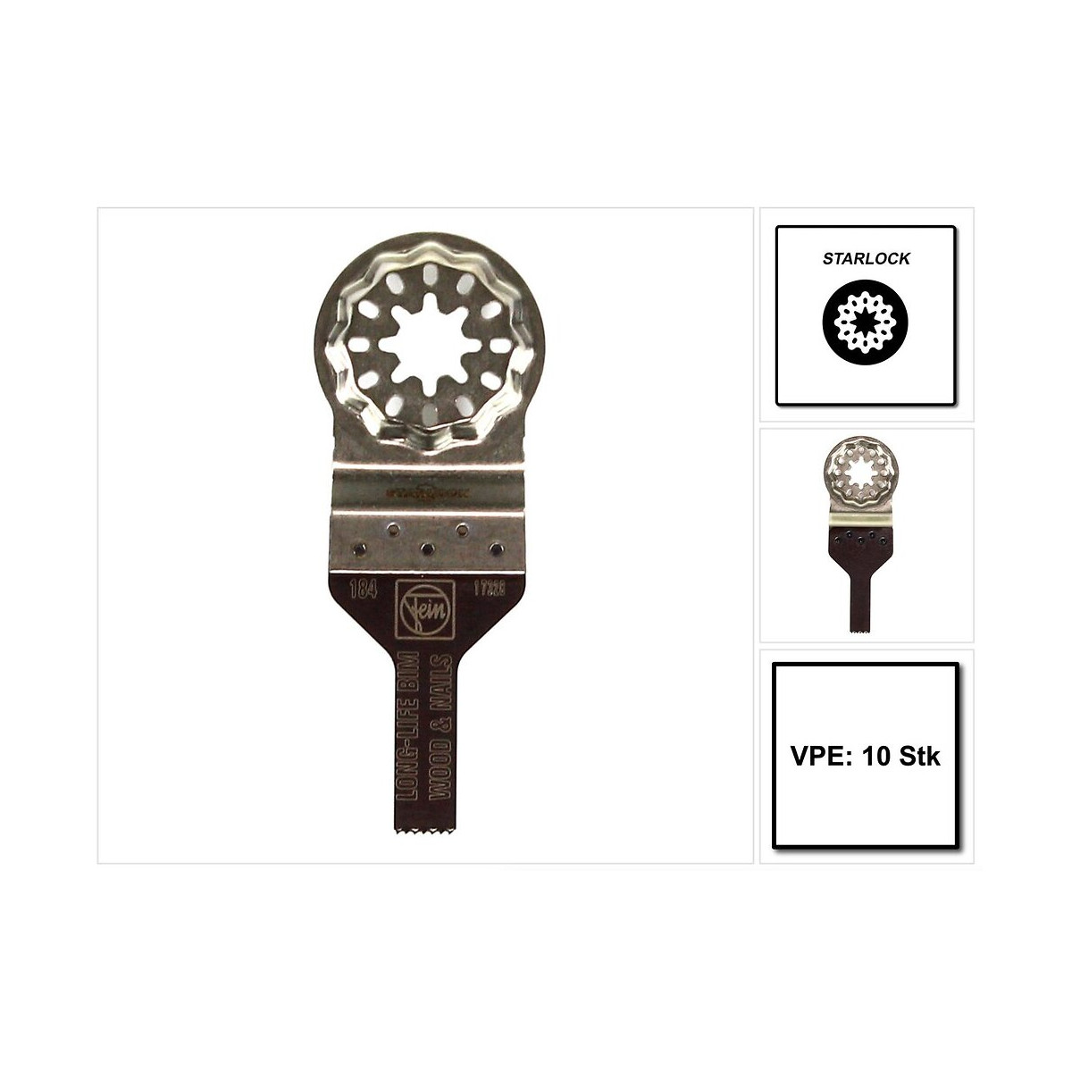 Contenu du paquet: - 10x FEIN Long-Life E-Cut Starlock Lame de scie 30 x 10 mm ( 63502184240 ) BI-métal Description du produit: La lame de scie bimétallique FEIN est adaptée à tous les matériaux en bois, en plaque de plâtre et en plastique. Une excellente durée de vie et une qualité de coupe élevée permettent une bonne progression du travail. La lame de scie est extrêmement robuste et insensible même contre les clous dans le bois (jusqu’à 4 mm de diamètre), la maçonnerie, etc. La largeur moyenne et la forme cintrée garantissent une vitesse optimale et un bon retrait des copeaux. Spécifications techniques: Largeur de coupe: 10 mm Unité d'emballage: 10x Porte-outil: Starlock Matériel: Bi-métal