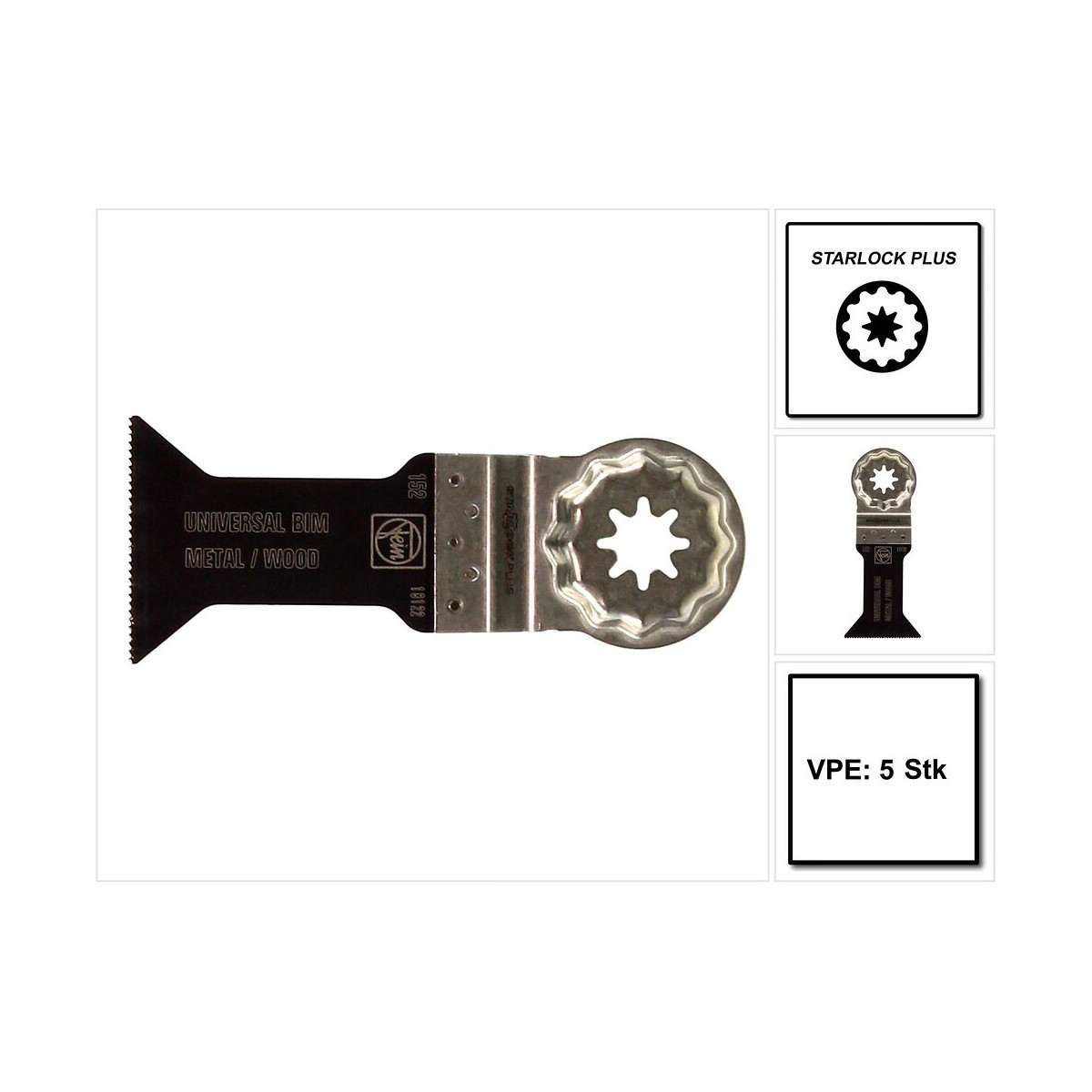 Contenu du paquet: - 5x FEIN E-Cut Universal Starlock Plus Lame de scie 60 x 44 mm ( 63502152230 ) BI-métal Description du produit: Cette lame de scie bimétal de FEIN a une denture ondulée universelle. Il peut être utilisé dans une large gamme d'applications: pour les tôles jusqu'à 2 mm, les profilés en aluminium, les tuyaux en cuivre, le bois, les plaques de plâtre et les plastiques. La forme large et cintrée assure une vitesse de coupe optimale et un bon retrait des copeaux. Spécifications techniques: Forme: 152 Porte-outil: Starlock Plus Largeur: 44 mm Longueur: 60 mm