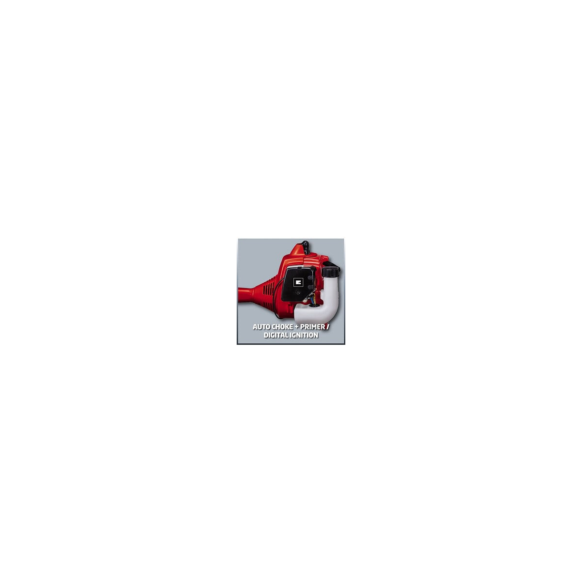 Débroussailleuse GC-BC 25 AS Einhell CARACTÉRISTIQUES : Moteur 2 temps haut de gamme à vibrations atténuées Double poignée universelle "Bikehandle" en alu, réglable, pour un guidage optimal Arbre séparable pour un transport facilité + un rangement peu encombrant Lame 3 dents Double fil avec avance automatique Système de démarrage rapide "Quick Start" par amorçage "Primer" (pompe à carburant manuelle) + starter à retour automatique Harnais confortable Embrayage centrifuge 7kg DONNÉES TECHNIQUES : Puissance : 0.8 kW Réservoir carburant : 0.4 l Vitesse à vide : 6400 tr/min ( bobine de fil) Vitesse à vide : 7200 tr/min ( lame) Largeur de coupe : 450 mm fil / 23 cm Lame Diamètre fil de coupe : 2 mm Type moteur : 2 temps, refroidi par air
