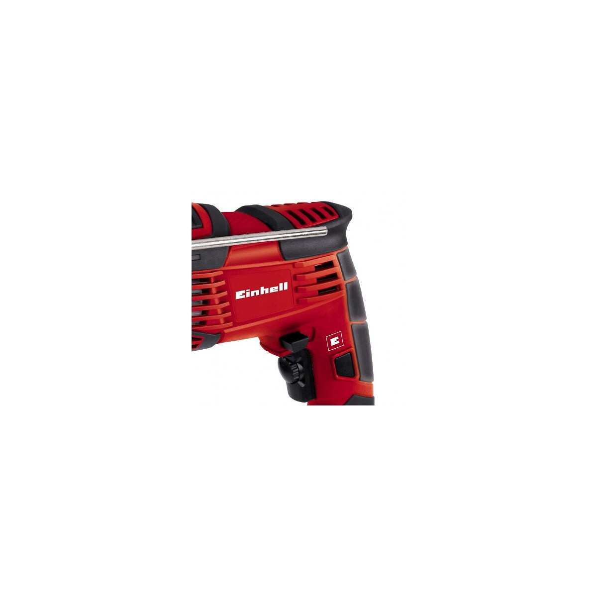 Perceuse à percussion électrique TH-ID 1000 E Einhell Caractéristiques: - Grande prise souple. - Electronique de régulation avec présélection du nombre de tours. - Rotation droite et gauche. - Fonction perceuse / perceuse à percussion. - Poignée antidérapante. - Collier de serrage de 43 mm. - Comprend: poignée auxiliaire avec dispositif de verrouillage et butée de sécurité. Données techniques: - Tension secteur: 230 V | 50 Hz. - Puissance: 1010 W. - Vitesse: 0-3000 min ^ -1. - Nombre de percussions: 0-48000 1 / min. - Capacité maximale de perçage dans le bois: 32 mm. - Capacité maximale de perçage dans le métal: 13 mm. - Capacité maximale de forage dans le béton: 16 mm. - Poids: 2,1 kg.