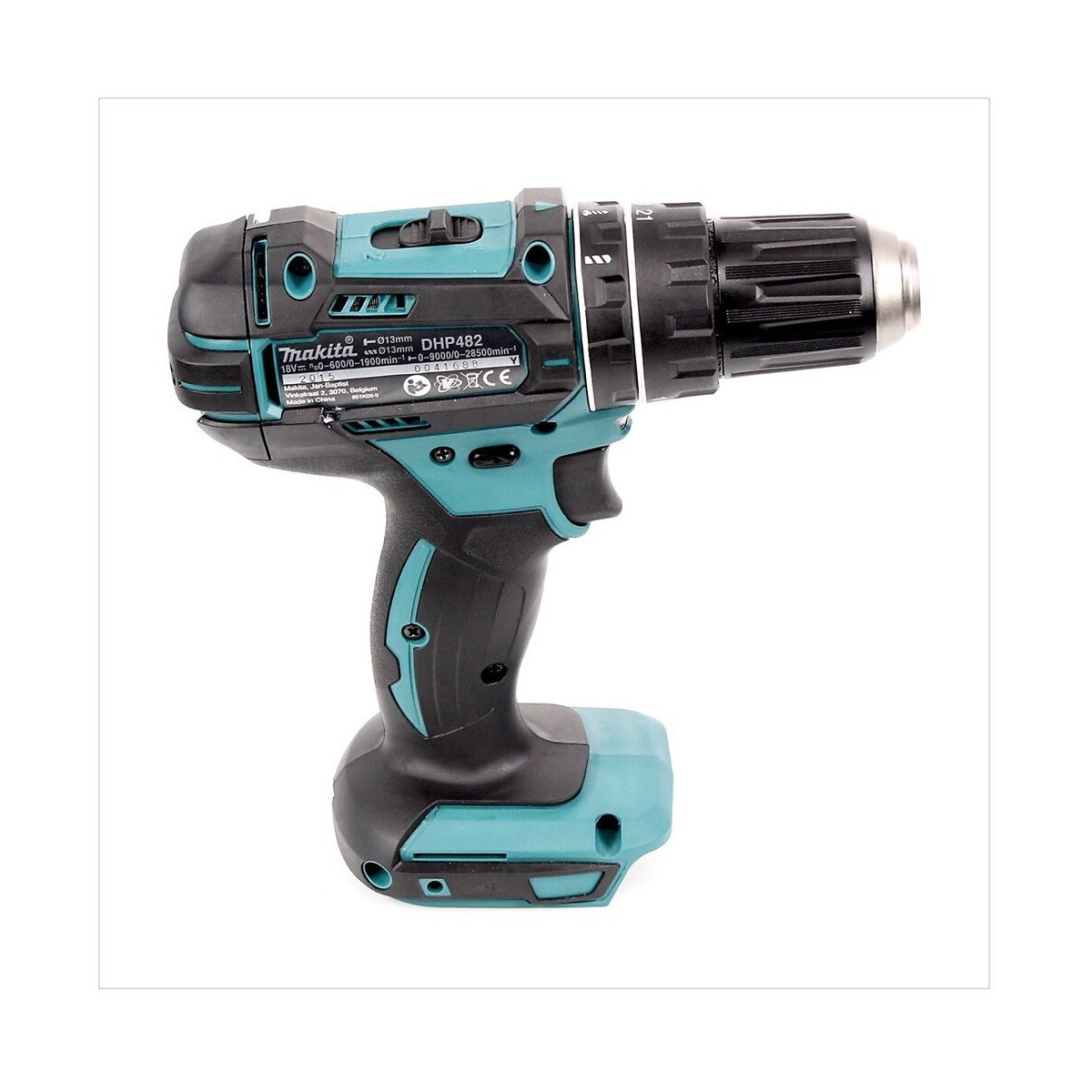 Perceuse à Percussion MAKITA DHP482 - Nouvelle Perceuse à Percussion plus compacte que le modèle précédent (BHP456) - 21 positions de couple + percussion - 2 vitesses mécaniques - Mandrin autobloquant, changement d'accessoires plus rapide d'une seule main - Poignée ergonomique avec revêtement d'élastomère pour une meilleure adhérence - Eclairage LED à l'avant qui illumine le point de travail pour une meilleure vision de l'utilisateur
