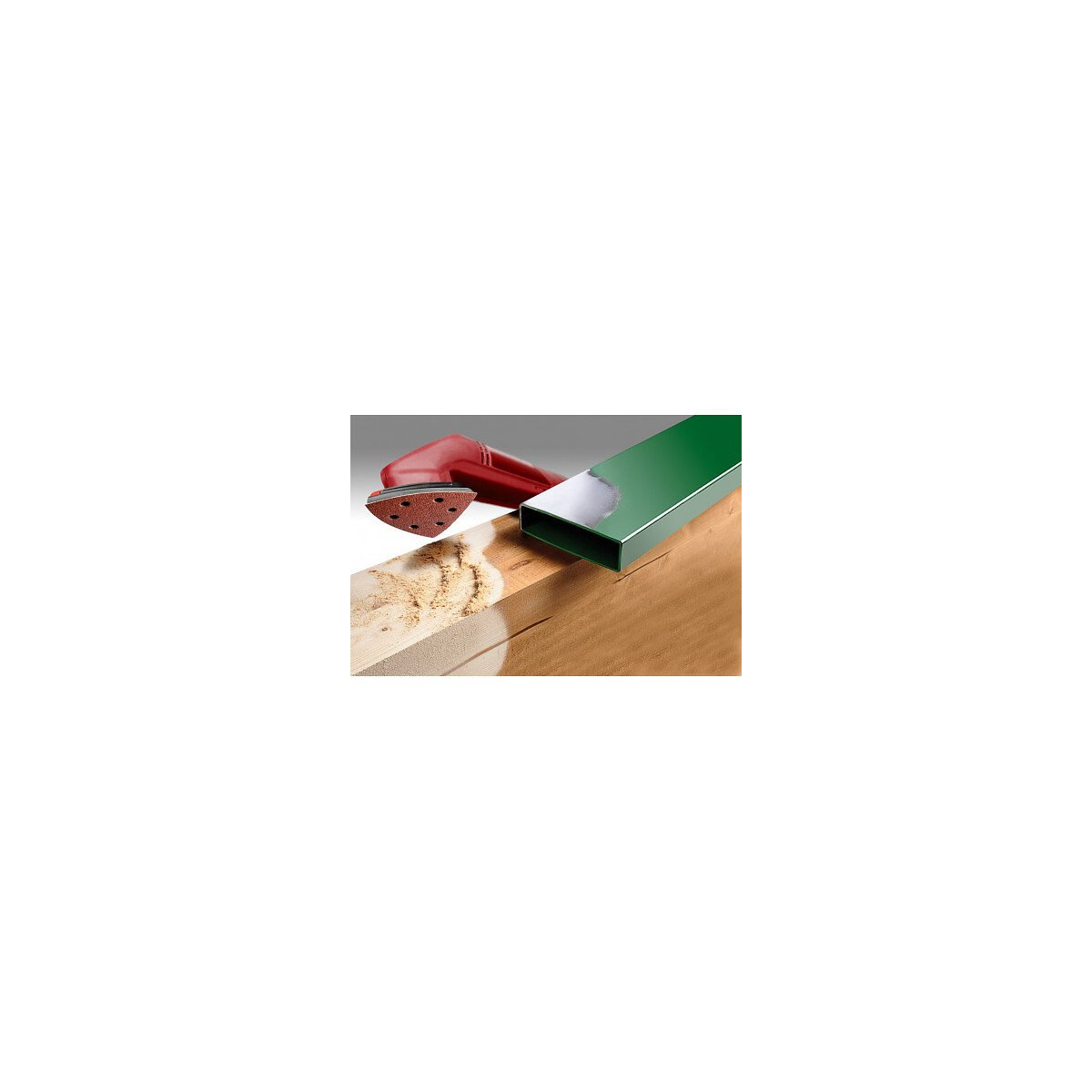 5 Patins abrasifs triangulaires BOIS & MÉTAL 93 m GR 40 QUICK-STICK KWB Patins abrasifs triangulaires, 93 mm, BOIS & MÉTAL, corindon affiné à l'oxyde d'aluminium entièrement lié à la résine synthétique, support renforcé, avec dos velours auto-agrippant. Patins perforés, pour ponceuses delta/triangulaires, pour métal et bois, peintures, laques, mastics, pierres et matières plastiques.