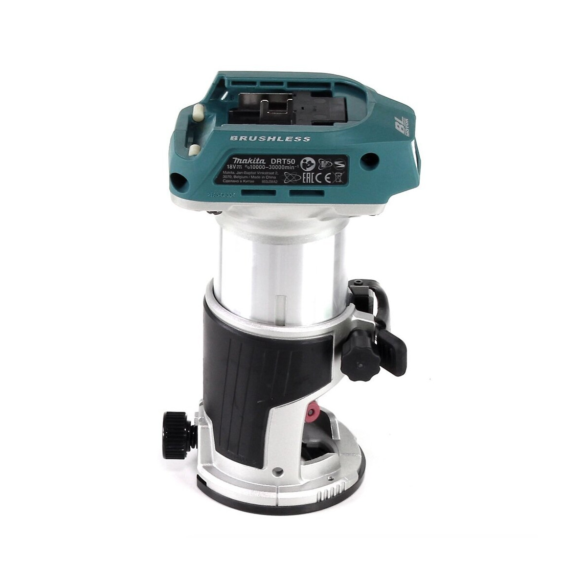 Contenu du paquet : - 1x Makita DRT50 Affleureuse multifonction sans fil - 1x Module de fraisage latéral - 1x Guide parallèle réglable - 1x Clé plate SW 13 (781039-9) - 1x Clé plate SW 22 (781041-2) - 1x Mandrin à pince 6mm - 1x Mandrin à pince 8mm - 1x Guide à affleurer - 1x Raccord pour aspirateur - sans batterie, sans chargeur Description du produit : Cette affleureuse multifonction sans fil DRT 50 Z de la maison Makita est parfaite pour le fraisage à ras et le fraisage de profils de bois, de plastique et de matériaux similaires grâce à son module de fraisage de profils intégré. L'outil DRT 50 est une affleureuse multifonction compacte et pratique. Elle impressionne par sa fonction de démarrage progressif qui permet de controler son démarrage, ainsi que par son variateur de vitesse qui permet de régler sa vitesse par une commande électronique. Son moteur sans balai assure une utilisation plus efficace de la batterie et garantit une plus grande durée de fonctionnement ainsi qu'une meuilleure durabilité de l'appareil. L'affleureuse DRT 50 est en plus dotée d'un port d'aspirateur pour fixer un aspirateur. Grâce au module angulaire et de routage optionnel, elle peut être utilisée pour de multiples applications. Spécifications techniques : Tension de sortie : 18 Volt Vitesse à vide : 10000-30000 min-1 Capacité du madrin à pince : 6 mm, 8 mm, 1/4", 3/8". Profondeur de fraisage : 0-40 mm Longueur totale : 226 mm Poids net : 1,8-2,1 kg Pression sonore (LpA) : 78 dB (A) Marge d'incertitude (K) : 3 dB (A) Valeur des vibrations (rotation sans charge) : 2,5 m/s2 ou moins Valeur des vibrations (fraisage de rainures dans le MDF) : 4,5 m/s2 Marge d'incertitude vibration (K) : 1,5 m/s