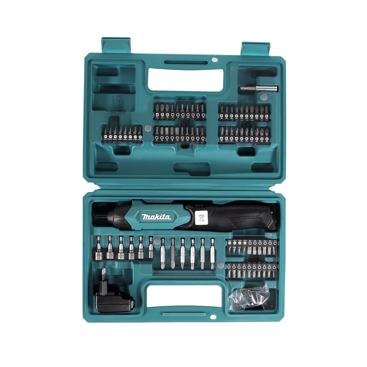 Tournevis droit 3,6V 4Nm Makita Caractéristiques: - Tournevis droit sans fil 3,6 V, idéal pour les travaux domestiques et les travaux dans des endroits difficiles d'accès. - Avec la possibilité de travailler en mode tournevis droit ou pistolet, grâce à sa poignée à deux positions. - Présenté dans un coffret PVC avec 81 pièces à visser avec différents types d'embouts, qui comprend: embouts de 25 mm PZ: 0, 1, 2, 3 (3 de chaque) Hex: 2, 2,5, 3, 4, 5, 6 (2 de chaque) T: 10, 15, 20, 25, 27, 30,40 (3 de chaque) SL: 0,5x3, 0,5x4, 0,6x4,5, 0,8x5,5, 1,0x5,5, 1,2x6 .5 (2 de chaque) PH: 0, 1, 2 (3 de chaque), 3 (2 de chaque). - Pointes 50 mm T: 20, 25, 30 (1 de chaque) PH: 1, 2, 3 (1 de chaque). - Douilles 5, 6, 7, 8, 9, 10 mm (1 de chaque). - Porte-embout magnétique de 60 mm. - Comprend un chargeur USB et un câble de connexion pour le chargement. - Lumière LED pour une meilleure visibilité dans les endroits à faible luminescence. - Protégé avec du caoutchouc et de l'élastomère pour une meilleure adhérence, offrant une protection à la machine. Données techniques: - Tension de la batterie 3,6 V. - Type de batterie au lithium-ion. - Régime 220 tr / min. - Insérez 1/4 "hex. - Dimensions. LxlxH 287 x 47 x 51/205 x 47 x 51 mm. - Incertitude sonore (K) 3,00 dB (A). - Éclairage intégré. - Capacité maximale. vis à bois 3,8x32 mm. - Couple maximum couple 4 Nm. Il comprend: - Mallette en PVC avec 81 pièces.