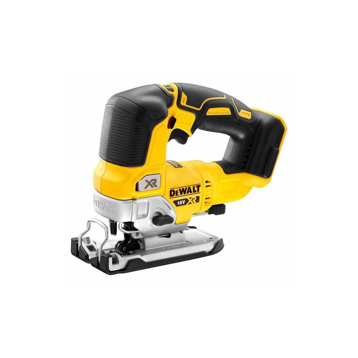 Scie Sauteuse DeWALT DCS334 - Moteur Brushless pour plus d'autonomie et durabilité - Déclenchement à vitesse variable intelligente et interrupteur lock-off pour les coupes rapides contrôlées et d'améliorer la sécurité du travail - Mouvement pendulaire à 4 étages pour mieux contrôler la scie et réaliser des coupes nettes - Semelle réglable sans outil, inclinable jusqu'à 45° de chaque côté, avec semelle additionnelle anti-rayures - Mécanisme de changement rapide de lame sans clé acceptant les lames à emmanchement en T