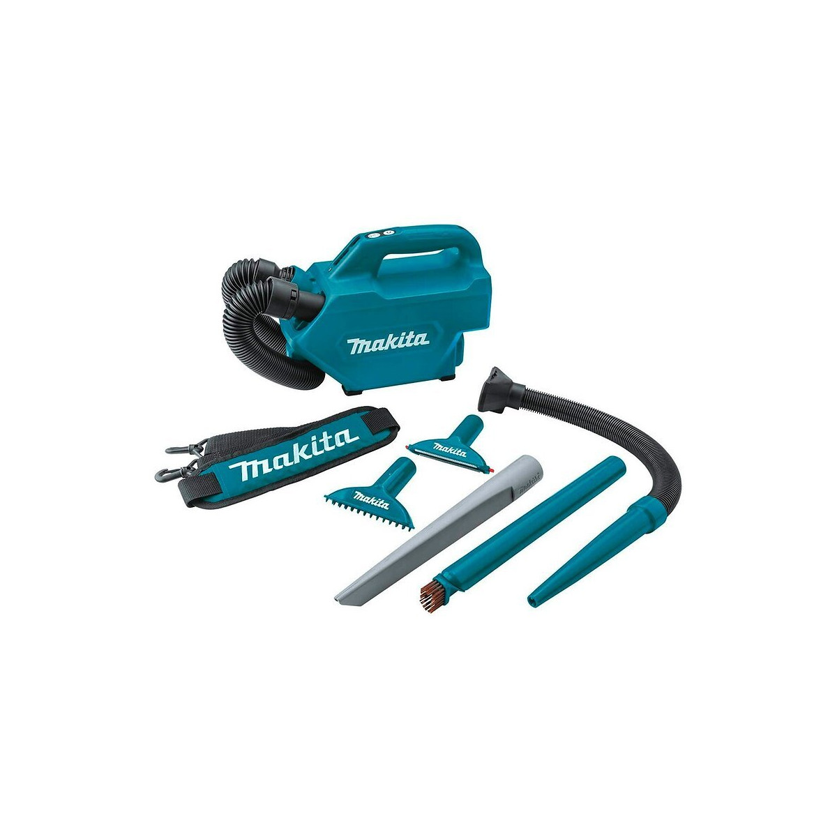Aspirateur MAKITA DCL184 - Puissance d'aspiration plus élevée et durée de fonctionnement continue plus longue sur le modèle CL121D 12V max - Conception optimale du corps de l'outil pour nettoyer l'intérieur de la voiture. Équipé d'une variété de buses. Compatible avec les autres buses de nos aspirateurs - Le nettoyage peut également être effectué sans buse en utilisant un tube droit avec une extrémité biseautée en guise de buse - Faible niveau sonore grâce à l'éponge insonorisante placée à l'intérieur du corps de l'aspirateur - Le tuyau peut être rallongé jusqu'à 1 m et peut être rangé dans l'aspirateur - La sangle d'attache peut être facilement suspendue sur votre épaule pour une mobilité accrue - Commutateur de sélection du volume d'air (Max / High / Normal) - Compatible avec les sacs à poussière en papier jetables et les sacs à poussière en tissu (le sac à poussière en tissu peut être lavé à l'eau et au savon)