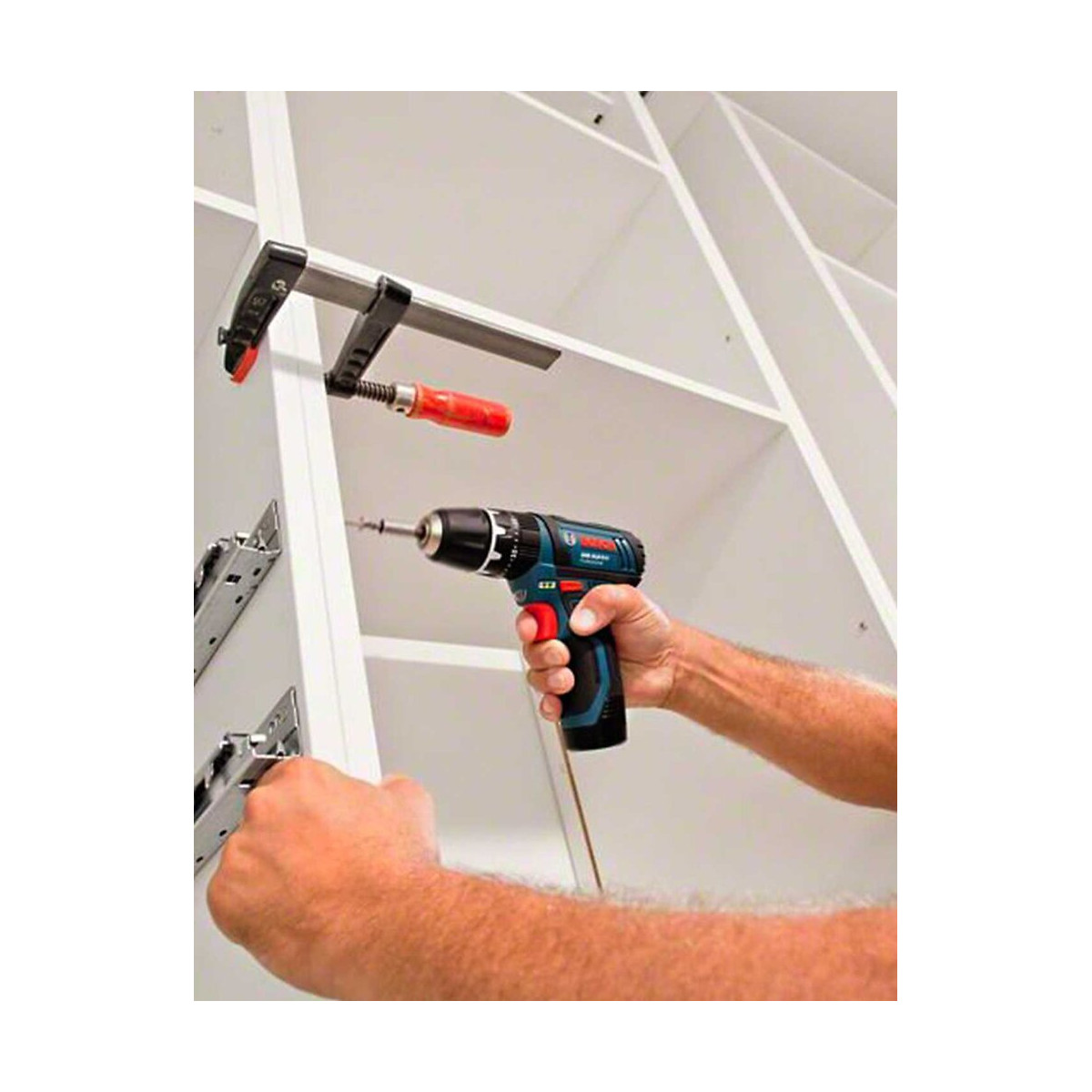 Perceuse à Percussion BOSCH GSB 12V-15 Professional - Avec 189 mm, c'est la perceuse-visseuse la plus compacte de sa catégorie garantissant ainsi une prise en main optimale notamment lors des travaux de vissage et perçage en hauteur et dans les endroits difficiles d'accès - Engrenage 2 vitesses pour les applications de vissage et de perçage difficiles dans le bois et le métal et de percussion dans la maçonnerie - Mandrin Auto-Lock 10 mm