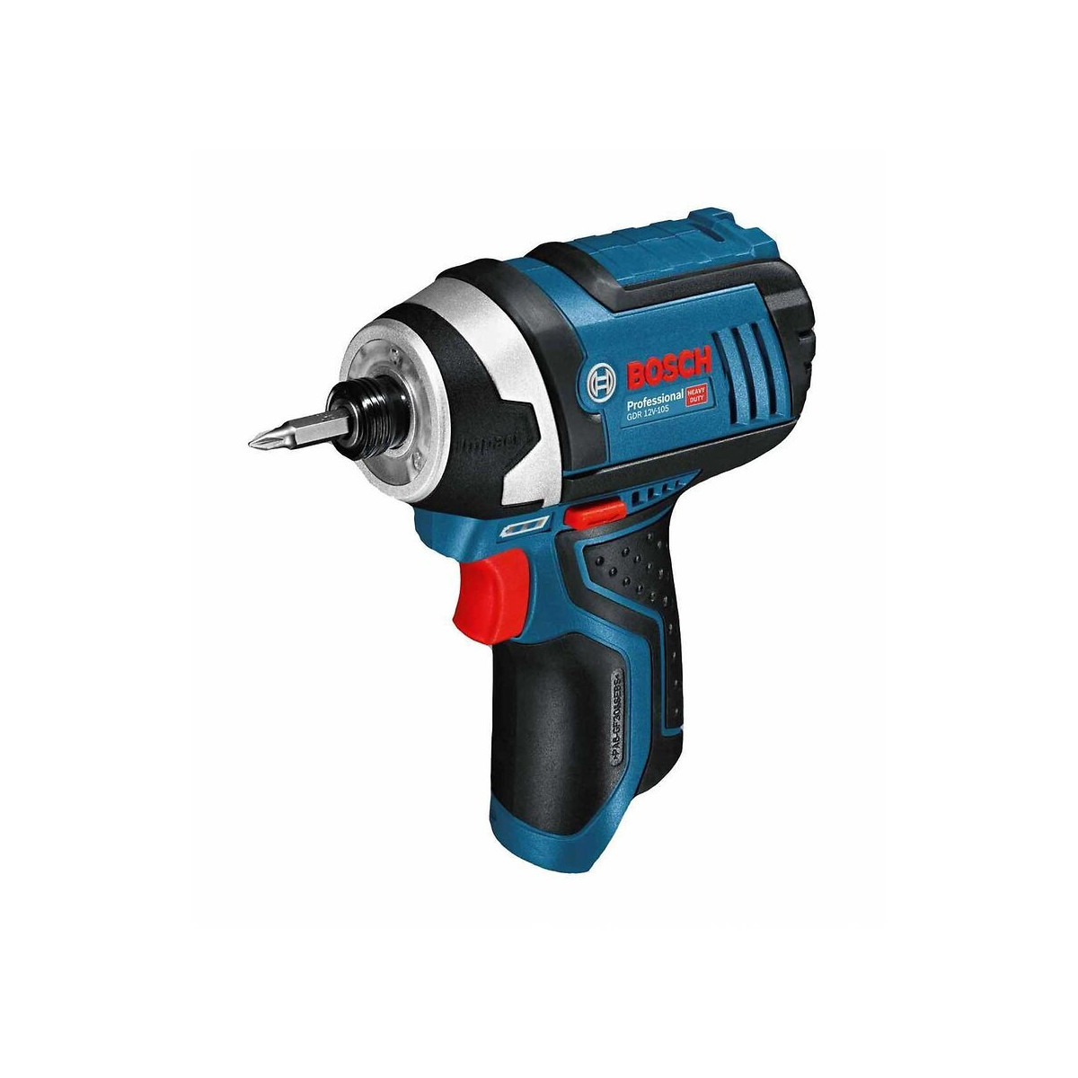 Visseuse à Chocs BOSCH GDR 12V-105 Professional - Avec 137 mm, elle est la plus compacte de la catégorie 12 V. Elle assure une prise en main optimale notamment lors des travaux de vissage en hauteur et dans les endroits difficiles d'accès - Couple remarquable (105 Nm) suffisant pour 80 % des applications courantes dans le métal et le béton - Résultats parfaits grâce à la présélection de vitesse pour les applications nécessitant une vitesse adaptée au matériau - Réversibilité gauche/droite pour visser et dévisser - Très bonne maniabilité de la visseuse grâce à sa poignée antidérapante Soft Grip - Eclairage LED intégré pour illuminer la zone de travail, même dans les coins sombres