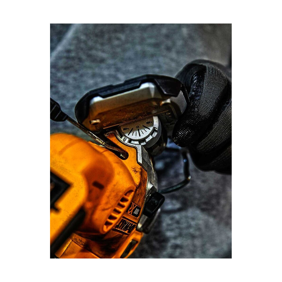 Scie Sauteuse DeWALT DCS334 - Moteur Brushless pour plus d'autonomie et durabilité - Déclenchement à vitesse variable intelligente et interrupteur lock-off pour les coupes rapides contrôlées et d'améliorer la sécurité du travail - Mouvement pendulaire à 4 étages pour mieux contrôler la scie et réaliser des coupes nettes - Semelle réglable sans outil, inclinable jusqu'à 45° de chaque côté, avec semelle additionnelle anti-rayures - Mécanisme de changement rapide de lame sans clé acceptant les lames à emmanchement en T