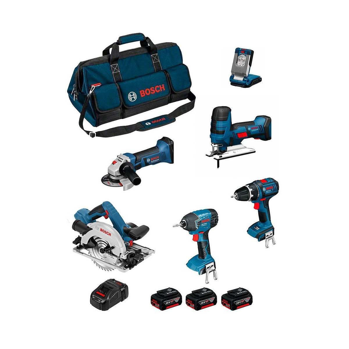 BOSCH Kit PSB6P3C Meuleuse BOSCH GWS 18-125 V-LI Professional - La Meuleuse d'Angle de 18V la plus puissante - Capacité d'abrasion et capacité de coupe les plus élevées de sa catégorie par charge de batterie - Moteur 4 pôles hautes performances extrêmement robuste et endurant pour une longévité élevée - Forme compacte et poids léger (seulement 2.3 kg) pour un grand confort de travail, surtout dans les endroits difficiles d'accès et pour les travaux en hauteur Perceuse à Percussion BOSCH GSB 18 V-LI Professional - Extrêmement compacte grâce à sa conception courte (seulement 195 mm) et encore plus légère (seulement 1,9 kg) pour une manipulation parfaite - Système Bosch ECP (Electronic Cell Protection) : protège la batterie contre la surcharge, l'échauffement et la décharge totale - Lumière LED intégrée pour l'éclairage de la zone de travail, même dans les endroits sombres - Clip de ceinture pratique pour accrocher les outils confortablement sur la ceinture ou l'échelle - Les batteries COOLPACK innovantes garantissent une dissipation thermique optimale et prolongent ainsi la durée de vie jusqu'à 100% (voir batteries lithium sans COOLPACK) - Frein moteur pour des travaux de serrage en série précis - Poignée ergonomique à longue prise et poignée anti-vibration Softgrip pour un travail sans effort Scie Sauteuse BOSCH GST 18 V-LI S Professional - Scie Sauteuse de 18 V puissante à poignée champignon étroite - Maîtrise parfaite même pour les coupes par en-dessous grâce à la poignée champignon étroite - Changement de lame facile et sans clé grâce au système SDS Bosch - Modèle 18 V très performant pour une progression de travail rapide - Idéal pour les coupes courbes et transversales dans le bois massif, les panneaux agglomérés, les bois composites et les matériaux durs ou épais - Dispose de la fonction Constant Speed, d'un éclairage LED, d'un mouvement orbital, du système de guidage Precision Control et d'une présélection de vitesse - Compatible avec le système d'aspiration de poussières Click & Clean Bosch et d'autres aspirateurs Bosch ainsi qu'avec toutes les batteries et tous les chargeurs 18 18V de Bosch Professional (Professional 18V System) ainsi qu'avec les rails de guidage Bosch moyennant l'utilisation d'un adaptateur Visseuse à Chocs BOSCH GDR 18V-LI Professional - Performances optimales: un couple élevé et une force de percussion importante permettent d'obtenir des performances optimales dans les travaux de boulonnage sur métal et sur bois (jusqu'à M14) - Conception compacte pour une manipulation parfaite, même dans les zones étroites - Confort supérieur: conception ergonomique pour travailler en toute sécurité et sans fatigue - Extrêmement robuste, résiste à une chute de 2m au dessus du sol, grâce à son boîtier Dura Shield Scie Circulaire BOSCH GKS 18V-57 G Professional - Une Scie Circulaire puissante pour des coupes rapides et précises - Puissance : progression de travail rapide et grande autonomie grâce au puissant moteur et aux batteries BOSCH - Flexibilité et précision : le rail de guidage permet de travailler rapidement et avec précision - Pour les besoins de chacun : la lame de la scie circulaire peut désormais aussi être placée du côté droit Lampe BOSCH GLI VariLED Professional - Lampe de travail Bosch au format de poche la plus lumineuse de la catégorie 18V - Avec 3 puissantes LED produisant 420 lumens pour un éclairement intense - Mécanisme de rabattement innovant facilitant le transport et assurant un rangement compact - Faisceau réglable (éclairage diffus / éclairage concentré) et angle d'éclairage réglable dans 9 positions pour de multiples applications - Cette lampe de travail est idéal pour bien éclairer de petits espaces