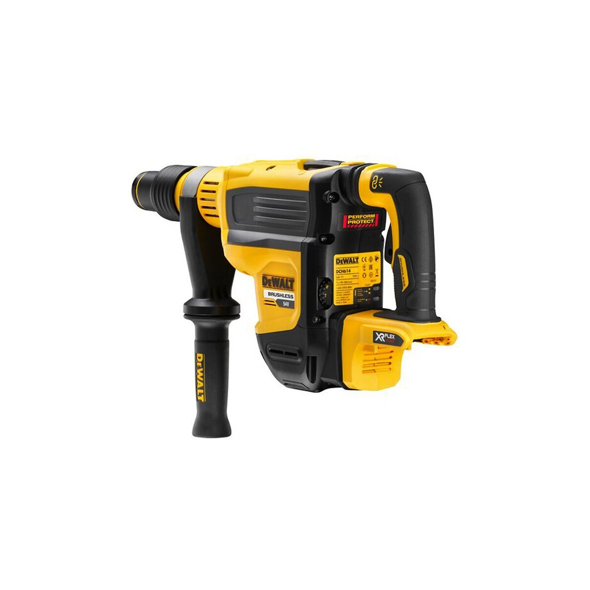 Perfo-Burineur DeWALT DCH614 FlexVolt - Moteur avec technologie brushless offre une plus grande autonomie et durabilité - Système anti-rotation qui détecte une perte de contrôle de l'outil et réagit en coupant instantanément l'électricité - Contrôle électronique de la vitesse variable et contrôle de l'énergie d'impact - Perform & Protect : la plus faible vibration de 8,8 m/s² qui réduit la fatigue de l'utilisateur - Idéal pour percer des ancrages et fixer des trous dans le béton, la brique et la maçonnerie jusqu'à 45 mm - Design ergonomique et compact qui offre un meilleur contrôle et un meilleur accès aux zones difficiles - Indicateur de réparation - Option d'activation et de synchronisation de la télécommande qui permet de relier l'outil à l'aspirateur XR FlexVolt