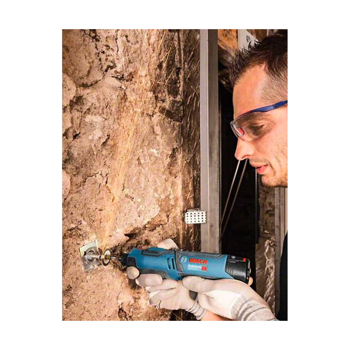 Outil Multifonction BOSCH GRO 12V-35 Professional - Puissant et polyvalent pour applications professionnelles - Puissant moteur à rotation rapide (jusqu'à 35 000 trs/min) pour une progression de travail rapide et optimal - De multiples possibilités d'utilisation professionnelle : travaux de découpe, ponçage, fraisage, polissage et perçage, notamment dans les endroits difficiles d'accès - Maniement agréable grâce à la forme compacte, au design ergonomique et à l'éclairage LED intégré