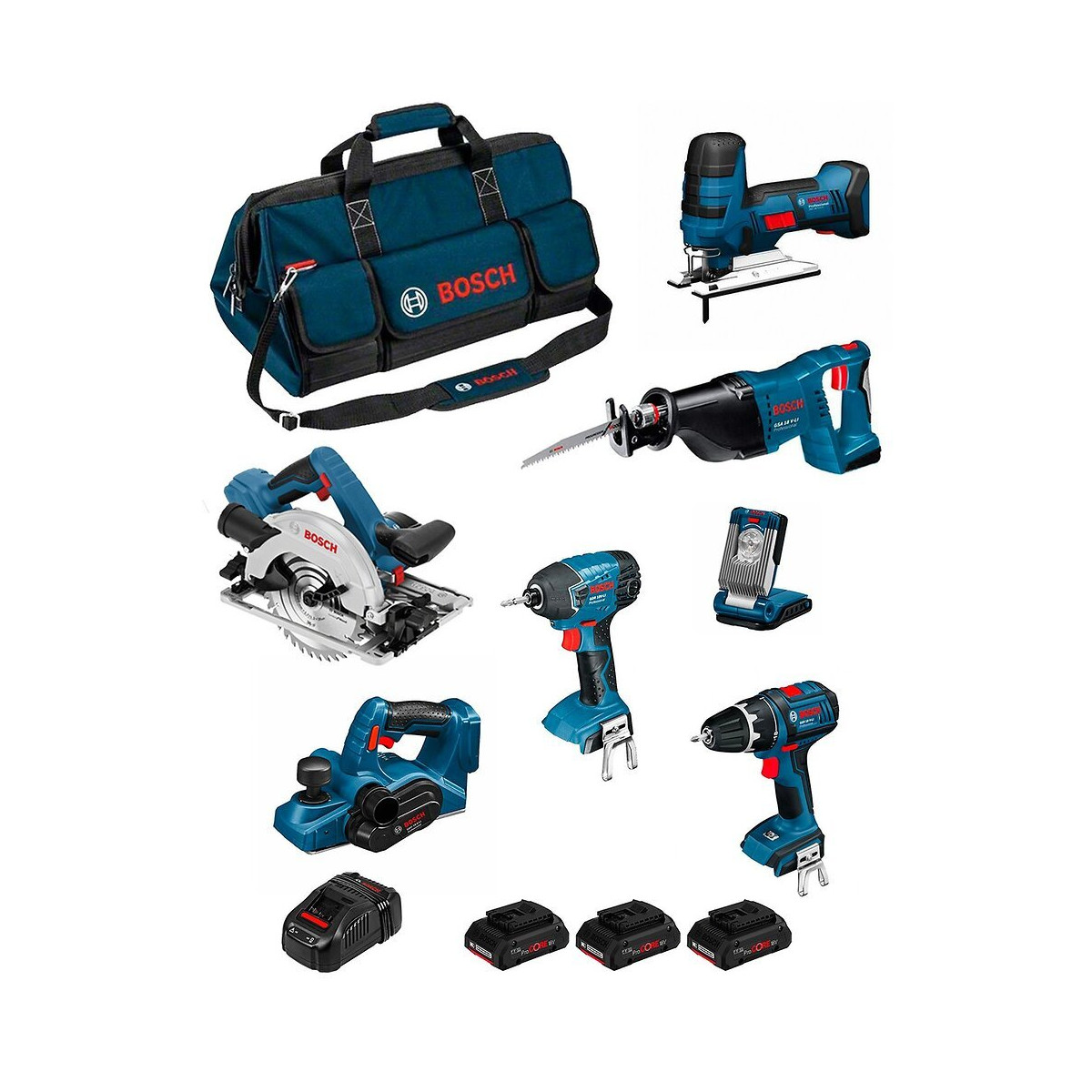 BOSCH Kit PSB7WM3EP Rabot BOSCH GHO 18 V-LI Professional - Ce Rabot offre les performances les plus impressionnantes de la gamme 18V - Profondeur de coupe réglable en continu jusqu'à 1,6 mm pour une progression d'avance rapide et ininterrompue - Avec des lames réversibles ultra-tranchantes en carbure solide pour des surfaces précises et de haute qualité - Faible poids pour une manipulation confortable et facile - Conçu pour raboter le bois - Comprend double évacuation des poussières et la sélection de la vitesse - Compatible avec le système d'aspiration de poussière Click & Clean Bosch Perceuse à Percussion BOSCH GSB 18 V-LI Professional - Extrêmement compacte grâce à sa conception courte (seulement 195 mm) et encore plus légère (seulement 1,9 kg) pour une manipulation parfaite - Système Bosch ECP (Electronic Cell Protection) : protège la batterie contre la surcharge, l'échauffement et la décharge totale - Lumière LED intégrée pour l'éclairage de la zone de travail, même dans les endroits sombres - Clip de ceinture pratique pour accrocher les outils confortablement sur la ceinture ou l'échelle - Les batteries COOLPACK innovantes garantissent une dissipation thermique optimale et prolongent ainsi la durée de vie jusqu'à 100% (voir batteries lithium sans COOLPACK) - Frein moteur pour des travaux de serrage en série précis - Poignée ergonomique à longue prise et poignée anti-vibration Softgrip pour un travail sans effort Scie Sauteuse BOSCH GST 18 V-LI S Professional - Scie Sauteuse de 18 V puissante à poignée champignon étroite - Maîtrise parfaite même pour les coupes par en-dessous grâce à la poignée champignon étroite - Changement de lame facile et sans clé grâce au système SDS Bosch - Modèle 18 V très performant pour une progression de travail rapide - Idéal pour les coupes courbes et transversales dans le bois massif, les panneaux agglomérés, les bois composites et les matériaux durs ou épais - Dispose de la fonction Constant Speed, d'un éclairage LED, d'un mouvement orbital, du système de guidage Precision Control et d'une présélection de vitesse - Compatible avec le système d'aspiration de poussières Click & Clean Bosch et d'autres aspirateurs Bosch ainsi qu'avec toutes les batteries et tous les chargeurs 18 18V de Bosch Professional (Professional 18V System) ainsi qu'avec les rails de guidage Bosch moyennant l'utilisation d'un adaptateur Visseuse à Chocs BOSCH GDR 18V-LI Professional - Performances optimales: un couple élevé et une force de percussion importante permettent d'obtenir des performances optimales dans les travaux de boulonnage sur métal et sur bois (jusqu'à M14) - Conception compacte pour une manipulation parfaite, même dans les zones étroites - Confort supérieur: conception ergonomique pour travailler en toute sécurité et sans fatigue - Extrêmement robuste, résiste à une chute de 2m au dessus du sol, grâce à son boîtier Dura Shield Scie Circulaire BOSCH GKS 18V-57 G Professional - Une Scie Circulaire puissante pour des coupes rapides et précises - Puissance : progression de travail rapide et grande autonomie grâce au puissant moteur et aux batteries BOSCH - Flexibilité et précision : le rail de guidage permet de travailler rapidement et avec précision - Pour les besoins de chacun : la lame de la scie circulaire peut désormais aussi être placée du côté droit Scie Sabre BOSCH GSA 18 V-LI Professional - Meilleures performances de coupe dans sa catégorie - Capacité de coupe par charge : plus de 100 poutrelles en sapin (100 x 100 mm) - Système Electronic Motor Protection (protection électronique du moteur) : protège le moteur contre les surcharges et garantit ainsi une longévité élevée - Une manipulation aisée : grâce au mécanisme SDS, le changement de la lame est simple et rapide Lampe BOSCH GLI VariLED Professional - Lampe de travail Bosch au format de poche la plus lumineuse de la catégorie 18V - Avec 3 puissantes LED produisant 420 lumens pour un éclairement intense - Mécanisme de rabattement innovant facilitant le transport et assurant un rangement compact - Faisceau réglable (éclairage diffus / éclairage concentré) et angle d'éclairage réglable dans 9 positions pour de multiples applications - Cette lampe de travail est idéal pour bien éclairer de petits espaces