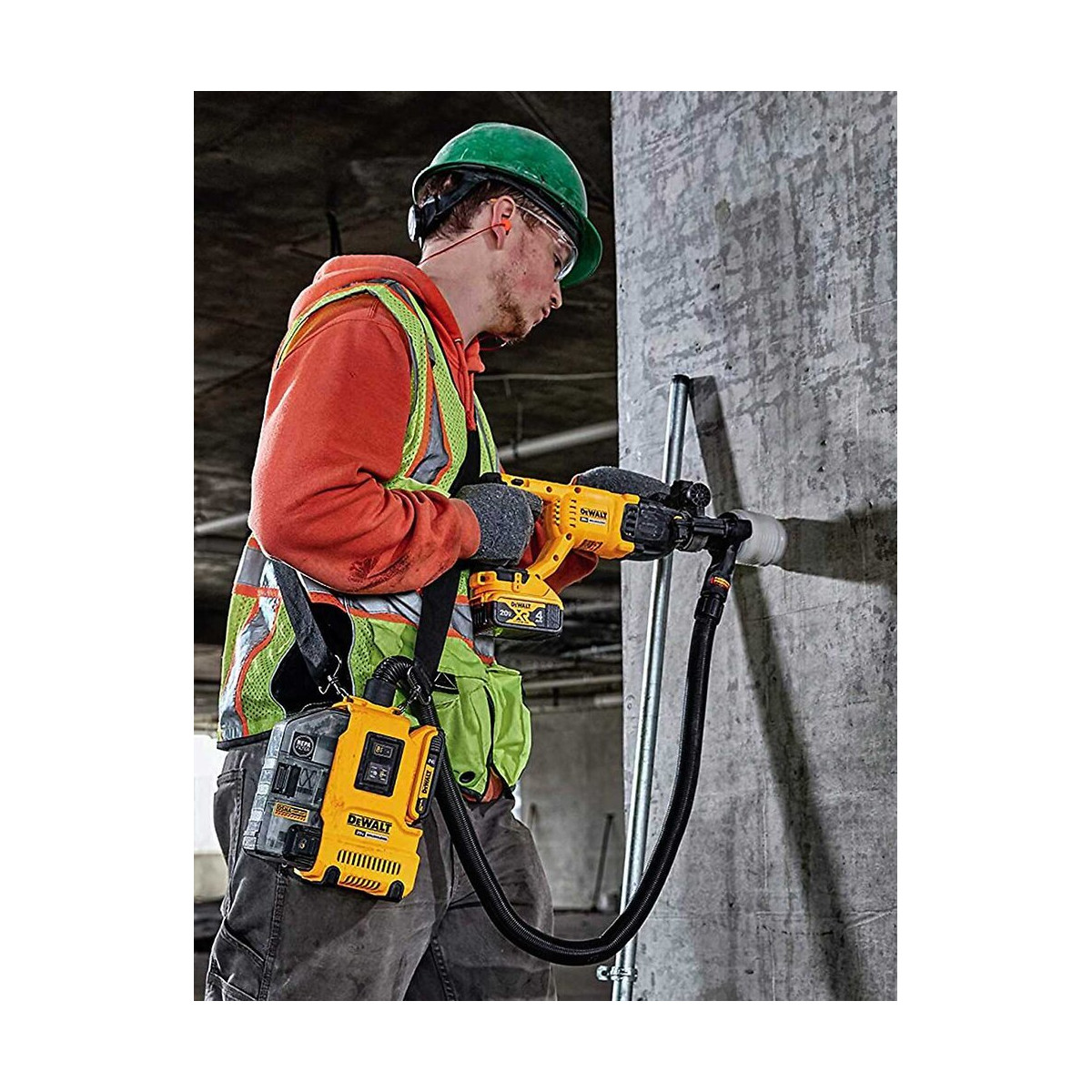 Aspirateur DeWALT DWH161 - Filtre lavable HEPA de haute qualité capable d'atteindre une efficacité de 99,5% avec des particules de poussière aussi petites que 0,3 microns - Propulsé par un moteur indépendant qui maintient les performances maximales de l'outil sans diminuer la durabilité - L'aspirateur continue de fonctionner deux secondes après le relâchement de la gâchette de l'outil pour garantir que les débris sont complètement éliminés (lorsqu'il est combiné avec le contrôle d'outil sans fil) - Mécanisme de nettoyage facile du filtre : offre une meilleure protection à l'utilisateur - Compatible avec tous les marteaux SDS-Plus et tous les outils avec sortie d'aspiration de poussière - Compatible avec le contrôle d'activation à distance (non inclus) pour activer et synchroniser avec un autre outil avec la même fonction sans fil