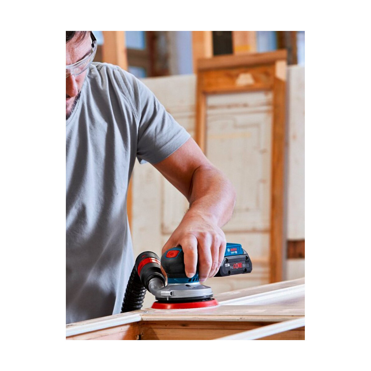 Ponceuse Excentrique BOSCH GEX 18V-125 Professional - La Ponceuse Excentrique GEX 18V-125 Professional offre aux utilisateurs une maîtrise parfaite, surtout pour le ponçage de grandes surfaces - Le point d'équilibre placé tout près de la pièce et l'excellente ergonomie du repose-main et de la poignée assurent une maîtrise parfaite - Le moteur sans charbon et le Professional 18V System Bosch garantissent une progression de travail rapide et confèrent à la ponceuse une longue durée de vie - Conçue pour une utilisation facile et intuitive - Pour les travaux de ponçage de base, les ponçages intermédiaires, l'enlèvement de laques/vernis et la finition de surfaces - Elle est utilisable sur le bois, le bois plaqué, les laques et vernis, le mastic, les matières minérales et acryliques - Dispose aussi d'un sac à poussière, d'une présélection de vitesse et d'un plateau de ponçage de 125 mm avec système auto-agrippant pour une fixation facile des disques abrasifs - Compatible avec le Professional 18V System et avec le système d'aspiration Click & Clean Bosch