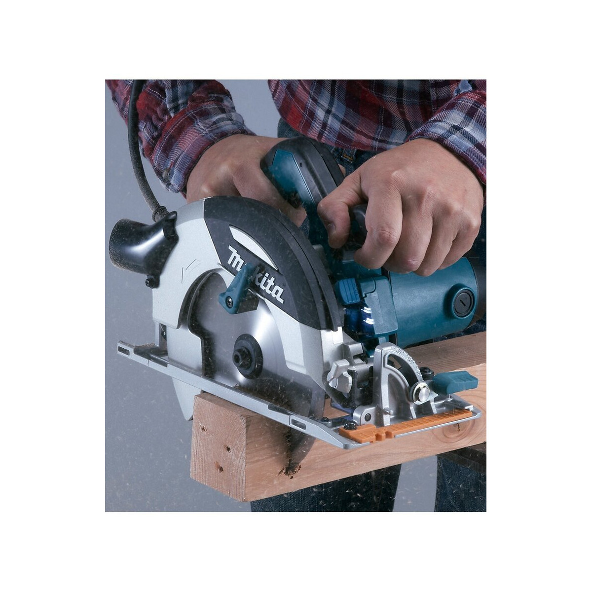 Scie Circulaire MAKITA HS7101K - Scie Circulaire compacte et légère, très adaptée aux coupes rapides - Frein électrique pour une plus grande sécurité de l'utilisateur - Réglage simple des butées d'angle pour une précision maximale - Visière de la coupe sur le devant, remplaçable en cas de casse - Grands leviers de réglage pour un réglage plus facile de la profondeur et de l'angle - Réglage de l'angle de 0° à 50° - Réglage rapide et facile du guide parallèle avec un seul tour de l'écrou à ailettes - Jet d'air dirigé vers l'avant pour nettoyer la zone de coupe - Carter moteur plat pour un changement de disque facile - Large bouche d'aspiration pour une bonne évacuation des copeaux : peut être connecté à un aspirateur - Points de préhension enduits d'élastomère pour une bonne prise en main et un plus grand confort d'utilisation - Double éclairage LED pour augmenter la visibilité dans les zones sombres