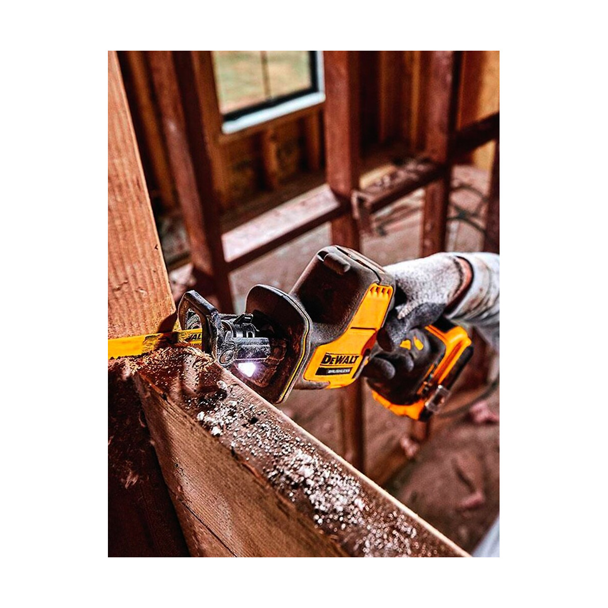 Mini-Scie Sabre DeWALT DCS369 - Scie Sabre compacte permettant un meilleur accès aux coupes difficiles à atteindre - Le moteur BRUSHLESS (sans charbon) offre plus de puissance, d'autonomie et de durabilité - Gâchette avec variateur de vitesse intelligente et interrupteur de blocage pour des coupes contrôlées rapides et une sécurité de travail accrue - Bien équilibrée et facile à manipuler grâce à la position centrale du moteur - Changement de lame simple, rapide et sans outil - Poignée ergonomique avec revêtement en caoutchouc pour une prise en main confortable - Lampe LED pour une meilleure visibilité et fonctionnalité