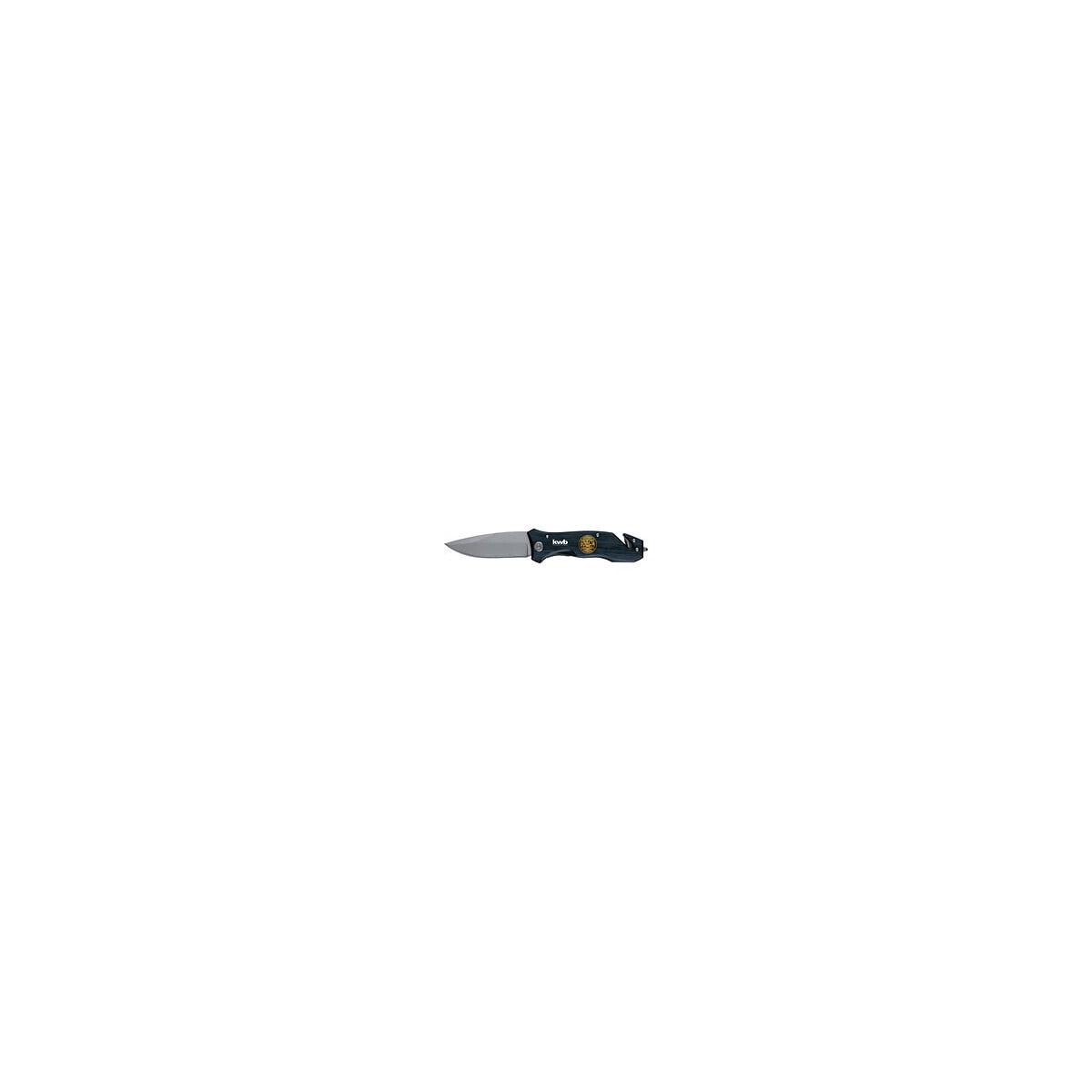 Rescue knife with vehicle mount KWB Outil professionnel, idéal pour la voiture pour la désincarcération après un accident, avec lame pliable en acier inoxydable 440A et aiguisée comme un rasoir, verrouillage sûr de la lame, brise-vitre, coupe-sangle, clip de ceinture et manche en aluminium avec symbole de flamme Fire Dept.
