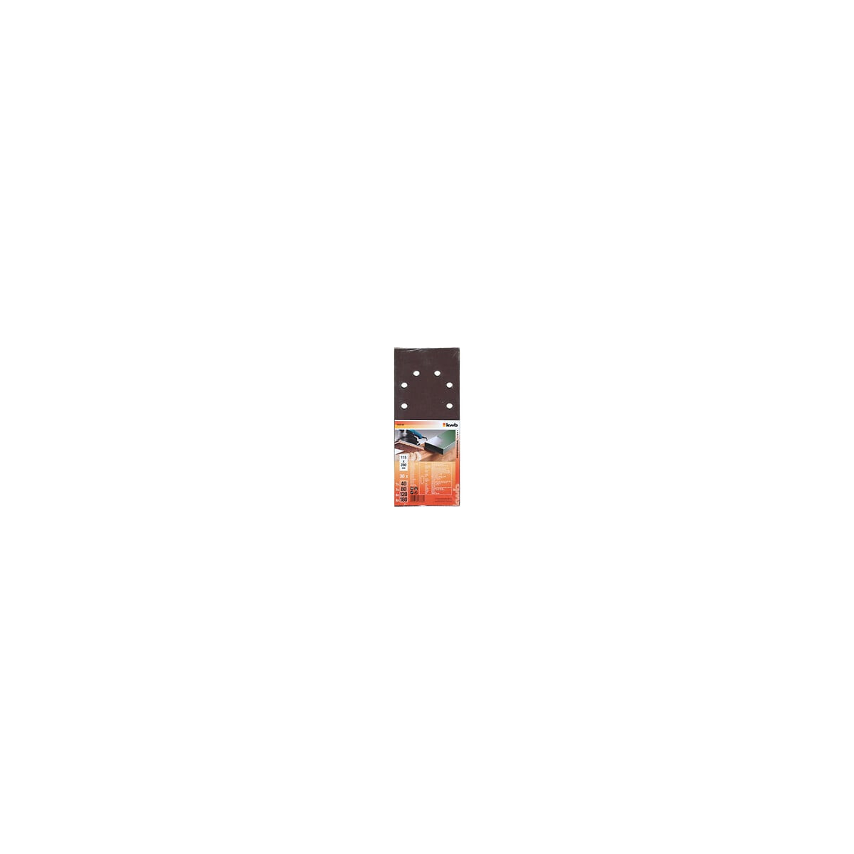 Patins abrasifs BOIS & MÉTAL, 115 x 280 mm, corindon à l'oxyde d'aluminium, perforation universelle, pour bois et métal, pour l'élimination de rouille, de peintures, de laques et de mastics, pour ponceuses vibrantes avec système d'aspiration.