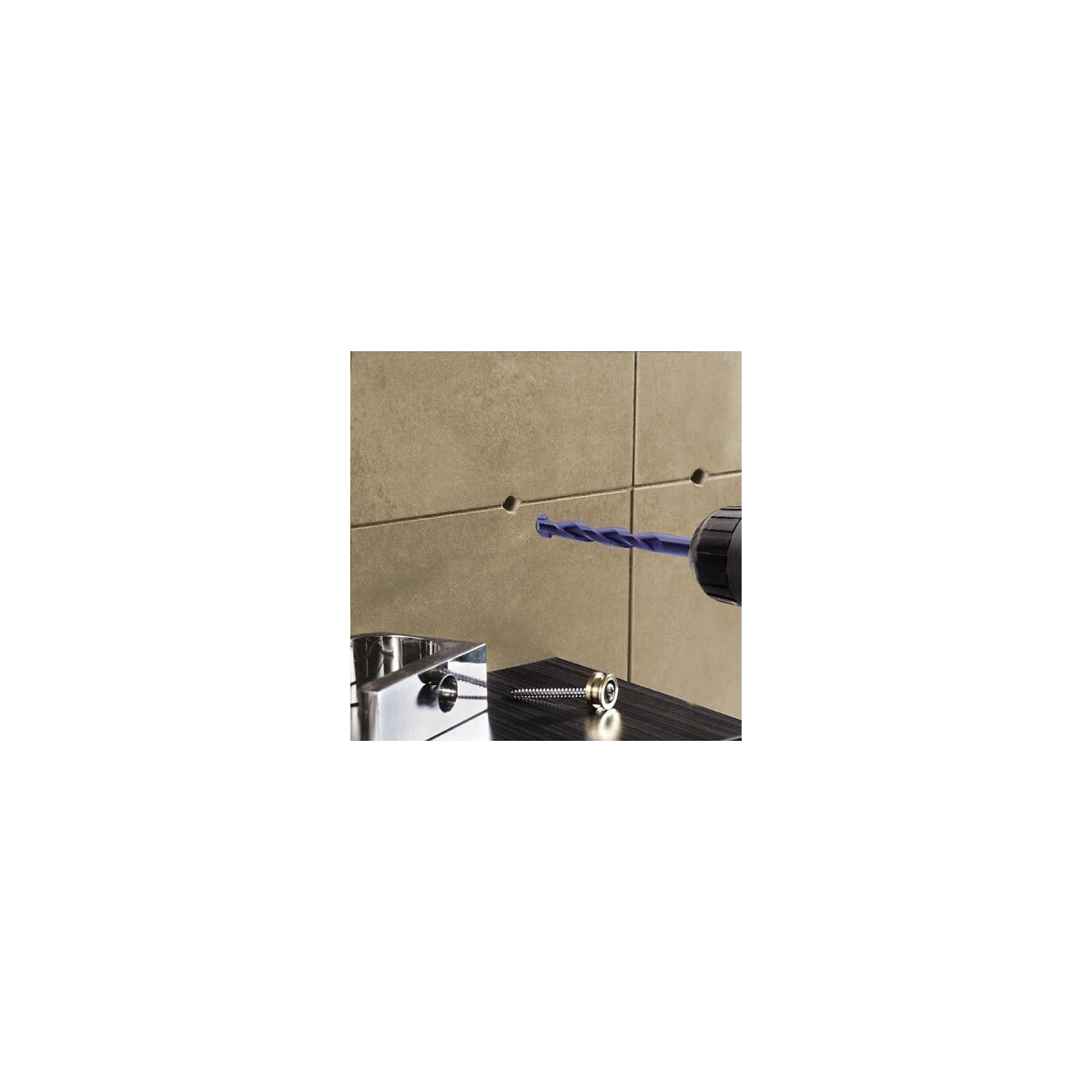 Mèche à grès cérame, au carbure, pointe titane-Wolfram TSM extra dure, soudée à de hautes températures, tranchants affûtées au diamant. Hélice usinée asymétrique assurant un transport optimal de la farine de perçage, pour toutes perceuses à percussion et perceuses rotatives. Couleur bleue, pour carrelages et grès cérame d'une résistance aux rayures de la catégorie 9, pour céramique et tuiles.