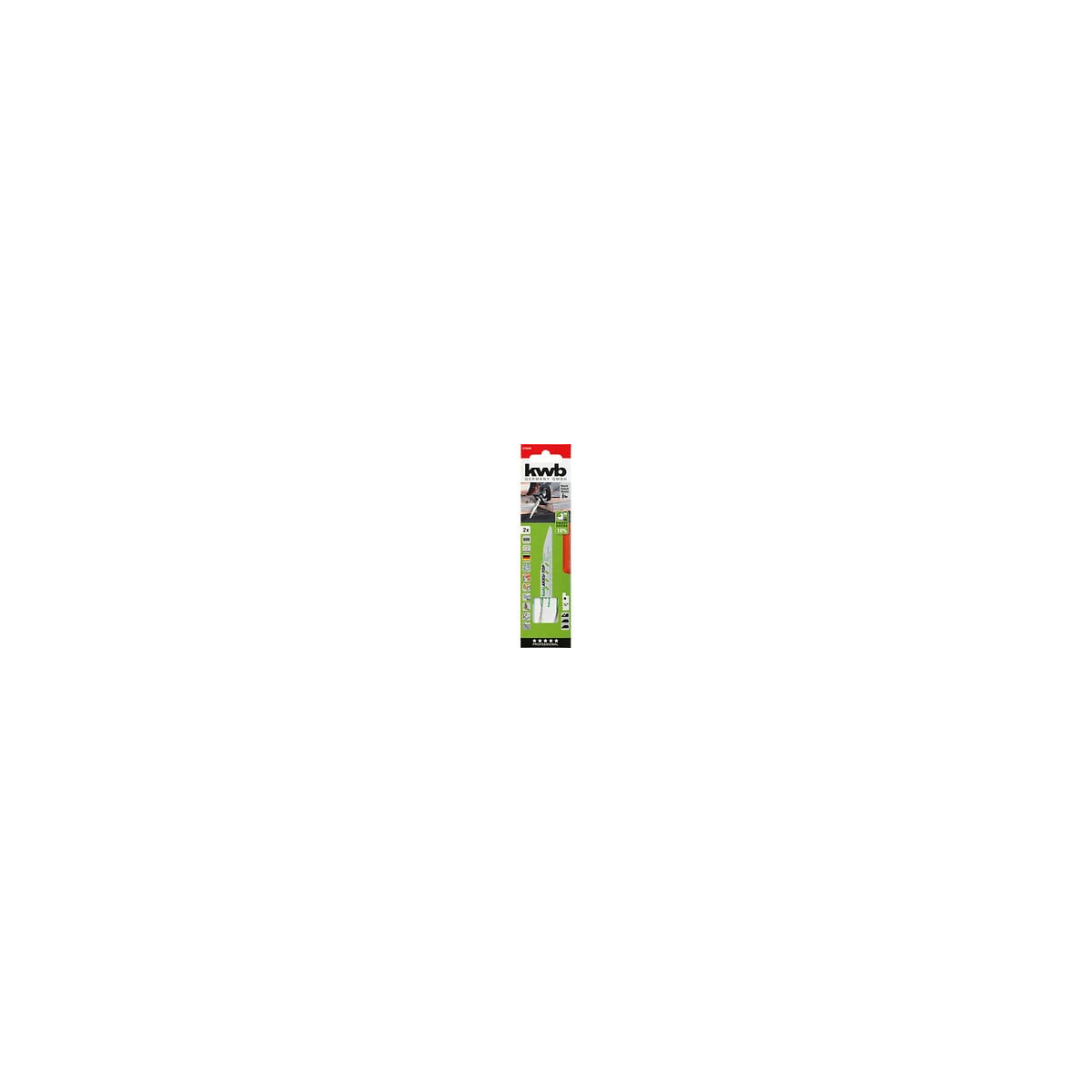2 Lame de scie sabre, travail du métal et du bois, bimétal KWB Denture variable, nouvelle denture <>, frottements faibles, évacuation de la chaleur améliorée, avec rainures d´aération, nouvelle géométrie de lame de scie brevetée pour une pression de coupe nettement augmentée. Vitesse de coupe jusqu´à 2 fois supérieure, pour le métal, les métaux non ferreux, le bois avec des restes de métal, les matériaux mixtes, le plastique.