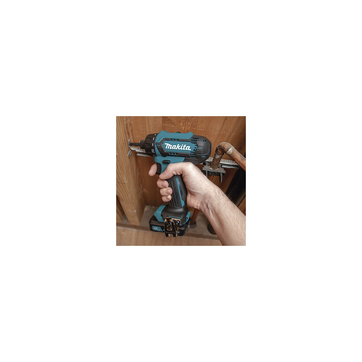 Perceuse sans fil 12V CXT (2 bat. x 2Ah) Makita Caractéristiques: - 18 positions de couple de serrage + foret. - 2 vitesses mécaniques. - Insert hexagonal 1/4 ", valable pour les embouts de tournevis, les clés à douille, même les forets. - Equipé de la nouvelle batterie avec indicateur de charge pour vous éviter de manquer de puissance pendant le travail. - LED à l'avant qui éclaire le point de travail pour une meilleure vision de l'utilisateur. - Poignée ergonomique enduite d'élastomère pour une meilleure prise en main. - Avec crochet de ceinture qui peut être placé à la fois à droite et à gauche de l'outil. - Batterie 2.0Ah à charge rapide grâce au système de refroidissement du chargeur qui empêche la batterie de chauffer pendant la charge. Données techniques: - Tension de la batterie 12Vmax. - Type de batterie CXT. - Temps de charge 30 min. - Rp.m élevé 0-1 700 tr / min. - Régime bas 0-450 tr / min. - Couple maximum serrage des joints durs 30 Nm. - Couple maximum couple de serrage du joint souple 14 Nm. - Capacité maximale en bois 21 mm. - Capacité maximale en métal 10 mm. - Positions de couple de serrage 18. - Insérez 1/4 "hex. - Vitesse variable (interrupteur). - Vitesses mécaniques 2. - Frein électrique. - Emission de vibrations 2,50 m / sec². - Incertitude de vibration (K) 1,50 m / sec². - Pression sonore 70,00 dB (A). - Puissance sonore 80,00 dB (A). - Incertitude sonore (K) 3,00 dB (A). - Poids selon EPTA 1,1 Kg. - Dimensions. LxlxH 157 x 66 x 209 mm. Il comprend: - Chargeur 12V CXT. - Batterie CXT 12V 2,0 Ah. - Mallette en PVC.