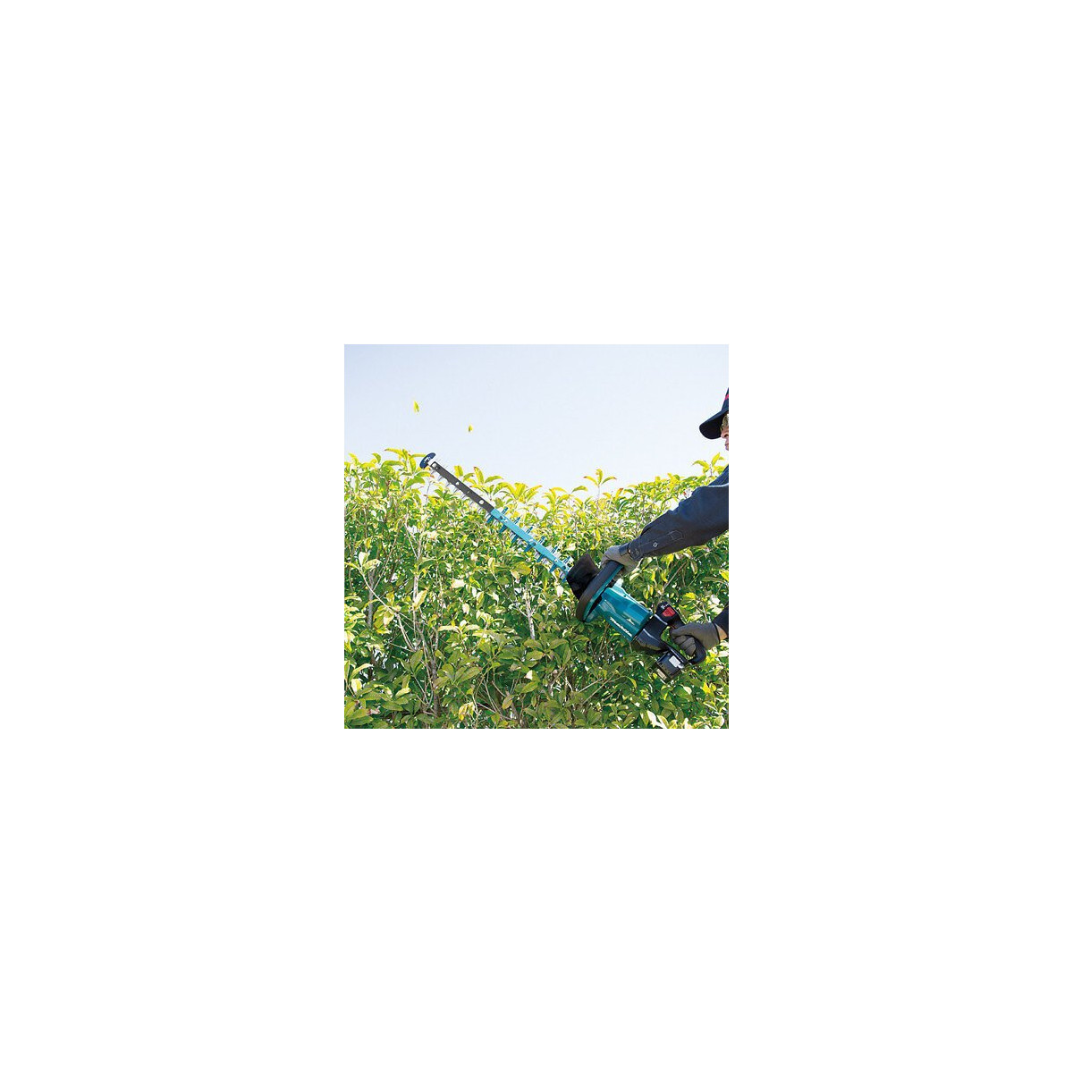 Taille-haie 18V LXT 60cm 5,0Ah 2 bat BL Makita Caractéristiques: - Structure anti-vibration. Il se compose d'une section de manivelle de moteur et d'une section de poignée, reliées par 5 roulements pour absorber les vibrations de la lame. - Poignée réglable: elle peut être tournée à gauche et à droite à un angle de 45 ° ou 90 °. Facilite une coupe verticale et angulaire plus rapide. - Vitesse variable contrôlée par Dial pour adapter les révolutions à l'application à effectuer. - Interrupteur de sécurité, l'utilisateur doit avoir les deux mains, une sur chaque poignée, pour démarrer l'outil. - Forme de lame optimale pour une coupe douce. - Moteur sans balais BL: temps de travail plus long avec une seule charge de batterie. Augmente la durée de vie de la batterie. Une plus grande durabilité en travail continu. - Très léger (4,3 Kg). - 3 vitesses + gâchette à vitesse variable. Données techniques: - Tension de la batterie 18V. - Type de batterie LXT. - Vitesse variable (cadran). - Longueur de coupe 60 cm. - Démarrage progressif. - Frein électrique. - Electronique constante. - Dimensions. LxlxH 1121 x 192 x 225 mm. - Poids selon EPTA 4,3 Kg. - Emission de vibrations 2,50 m / sec². - Incertitude de vibration (K) 3,00 m / sec². - Pression sonore 82,00 dB (A). - Puissance sonore 95,00 dB (A). - Incertitude sonore (K) 3,00 dB (A). - Protecteur de peigne.