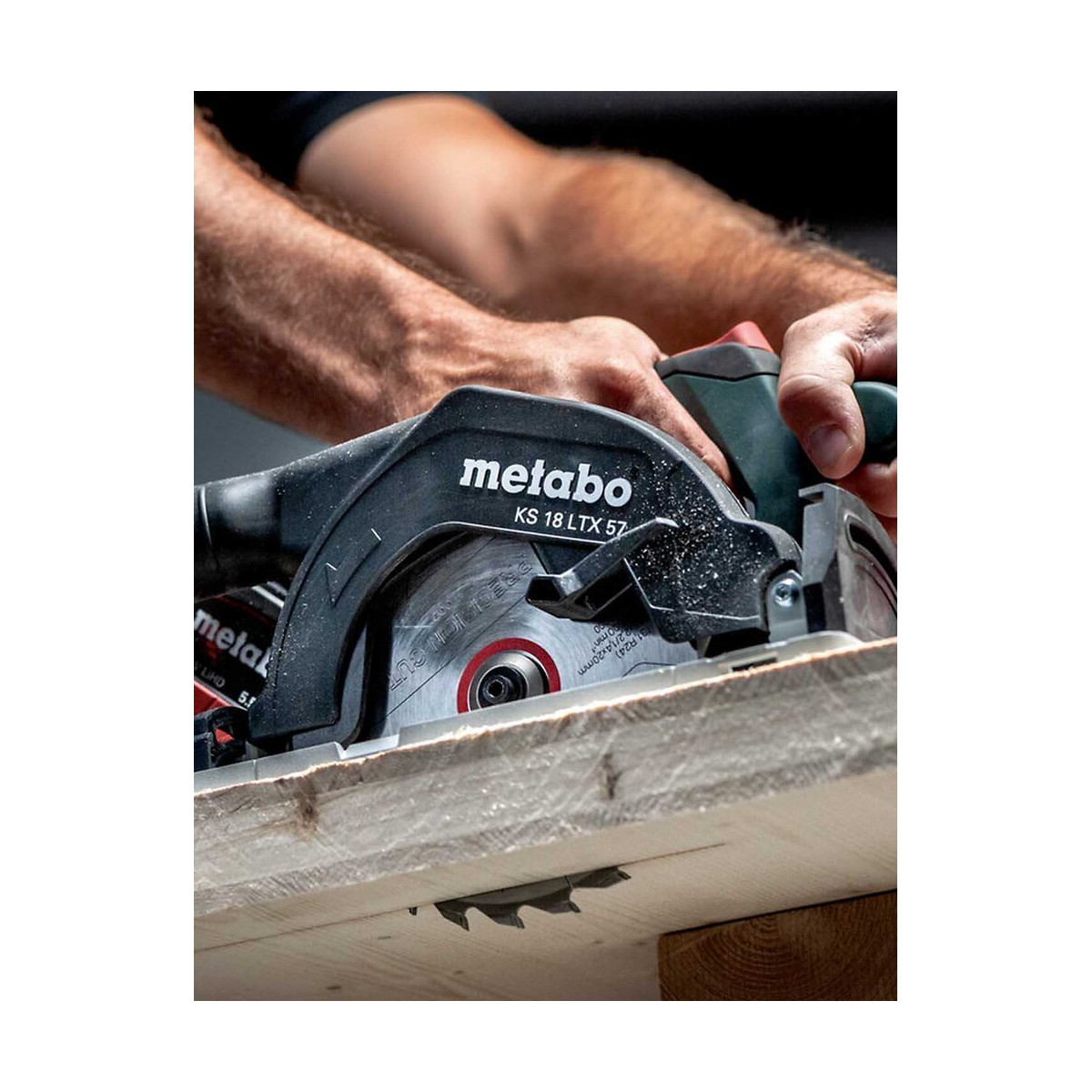 Scie Circulaire METABO KS 18 LTX 57 - Scie Circulaire sans fil puissante et légère pour une utilisation universelle sur les chantiers - Coupes en biais précises jusqu'à 50°, avec point cranté pratique à 45° - Position 0° réglable pour une précision de coupe maximale - Indicateur de coupe bien visible pour le sciage d'après tracé - Le frein de rotation arrête la lame de scie très rapidement et augmente la sécurité - Plateau en aluminium directement utilisable sur des rails de guidage Metabo ou d'autres marques - Poignée avec surface Softgrip anti-dérapante pour un guidage sûr - Possibilité de brancher un aspirateur grâce au raccordement d'aspirateurs universels