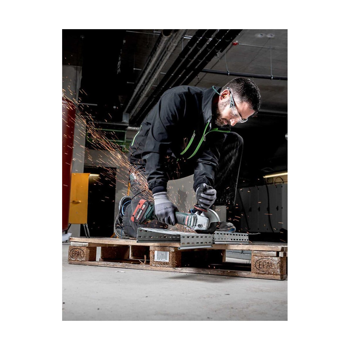 Meuleuse d'Angle METABO WB 18 LTX BL 125 Quick - Meuleuse d'Angle compacte pour un travail sans fatigue dans les espaces réduits ou au-dessus de la tête - Moteur Brushless sans charbon et étanche avec une protection optimale contre la poussière pour progresser rapidement et pour une efficacité maximale - Démarrage progressif électronique pour un démarrage sans à-coup - Le système de freinage rapide immobilise la meule en quelques secondes après l'arrêt de la machine pour une protection maximale de l'utilisateur - Arrêt électronique de sécurité : réduit le retour de couple en cas de blocage de la meule - pour une protection élevée de l'utilisateur - Protection contre la surcharge : protège le moteur contre la surchauffe - Protection anti-redémarrage : empêche tout démarrage involontaire après un changement de batterie - Capot de protection réglable sans outil, avec fixation anti-torsion - Système Metabo Quick pour le changement de meule sans outil grâce à l'écrou de serrage rapide - Filtre à poussières amovible pour la protection contre l'infiltration de particules - Batterie rotative pour travailler plus facilement dans les espaces réduits