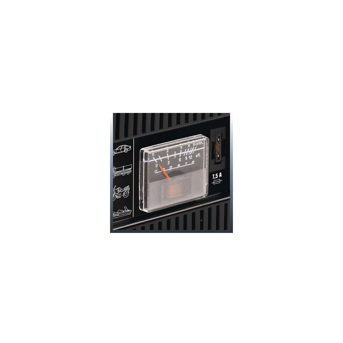 Chargeur de batterie 5 A. CC-BC 5 EINHELL Caractéristiques: Le chargeur de batterie Einhell CC-BC 5 ES Pratique et robuste, pour batteries 12 V. Ce chargeur possède un boîtier en tôle d'acier émaillée. Pour observer la progression de la charge, l'unité est équipée d'un ampèremètre, qui indique le courant de charge actuel. L'unité dispose également d'une protection anti-fausse polarisation et d'un dispositif de protection contre les surcharges. Données techniques: - Tension de charge: 12V - Rapport de charge: 3,5 A arithme. / 5 A eff. - Pour charger les batteries: min. 16 Ah jusqu'à max. 80 Ah - Construction entièrement isolée - Boîtier en acier - Poignée de transport - Ampèremètre - Protection contre les surcharges et fausse polarisation - Câble principal avec prise européenne - Chargé avec des pinces de poteau