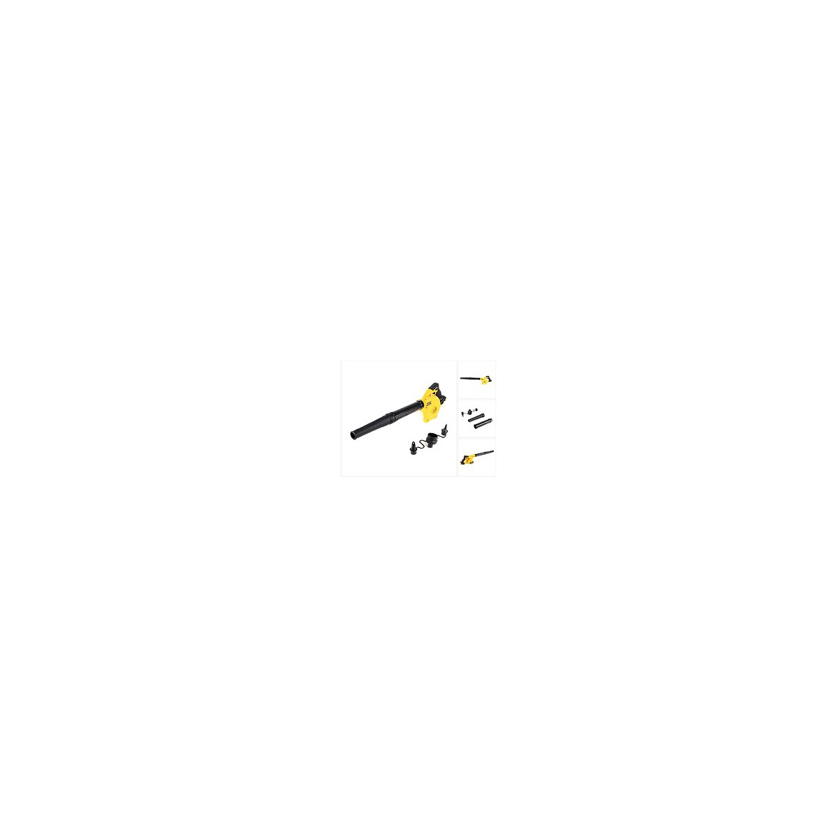 SOUFLEUR COMPACT XR 18V POUR TRAVAUX SANS CHARGEUR / BATTERIE DCV100-XJ DEWALT CARACTÉRISTIQUES: - Souffleur compact et léger pour le nettoyage de la poussière générée sur le site - Interrupteur à gâchette à vitesse variable pour un meilleur contrôle - Accessoires de gonflage / dégonflage pour des applications polyvalentes - Interrupteur avec verrouillage pour une utilisation facile - Batteries et chargeur vendus séparément - Comprend accessoires: buse ronde, extension de buse et couplage pour gonfler / dégonfler CARACTÉRISTIQUES: - Chimie de la batterie: XR Li-Ion - tension: 18 V - Vitesse du ventilateur: 18 000 tr / min - Puissance de sortie: 265 W - débit d'air: 2,8 m ^ 3 / min - vitesse de l'air: 80 m / s - Longueur: 508 mm - Bouton de verrouillage: oui - Poids: 1,3 kg - Vibration main / bras: <2,5 m / s2 - Incertitude K 1 (vibration): 1,5 m / s² - Pression sonore: 85 dB (A) - Pression acoustique: 96 dB (A) - Incertitude K 2 (son): 3 dB (A)
