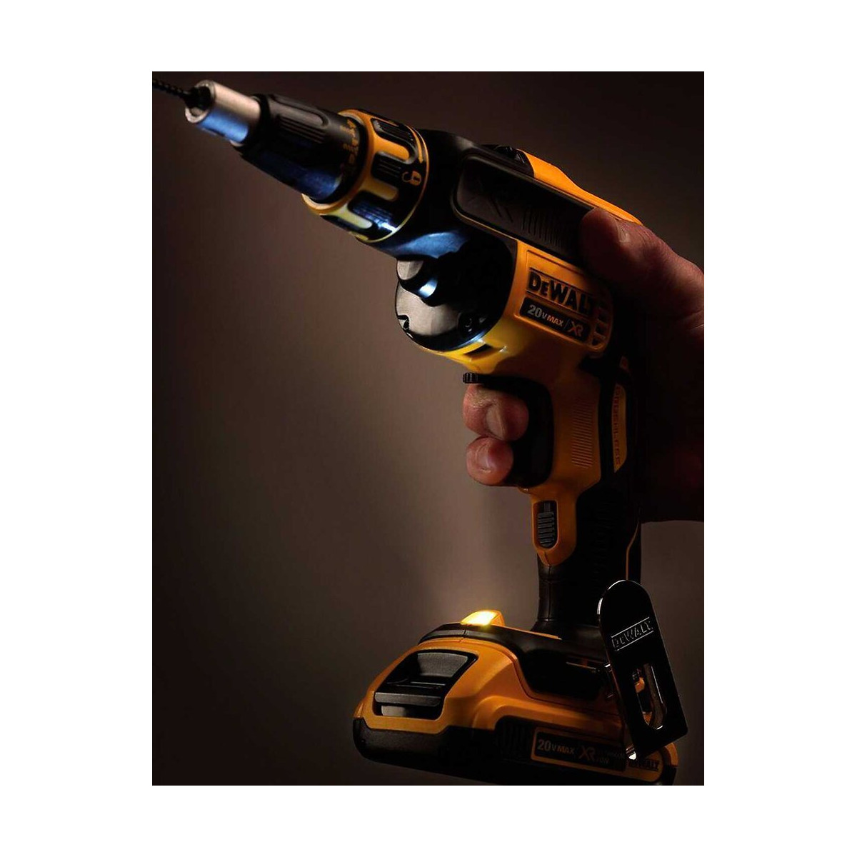 Visseuse de Plaquiste DeWALT DCF620 - Visseuse de Plaquiste 18V XR Brushless - Moteur puissant vis efficacement et efficacement offrant une plus longue autonomie - La fonction << Paramétrer et oublier >> rappelle votre paramètre d'ajustement de la profondeur lorsque vous enlevez et remplacez l'embout conique - Le verrouillage du déclenchement vous permet de travailler sans devoir tirer le déclencheur - Design robuste et durable idéal pour être utilisé sur le lieu de travail - L'une des plus légère et plus compacte sur le marché : elle vous garantit de pouvoir travailler confortablement et de l'utiliser dans des petits espaces - La poignée en caoutchouc conçue de manière ergonomique vous confère un excellent confort d'utilisation tout en utilisant l'outil soit dans la position << en ligne >> ou << poignée de pistolet >> - L'éclairage LED fournit une lumière correcte lorsque vous travaillez dans de petits espaces ou dans de petites zones avec une lumière restreinte - Le support de courroie anglé peut être positionné pour les utilisateurs gauchers ou droitiers et fixe l'outil solidement sur la ceinture à outils / la poche