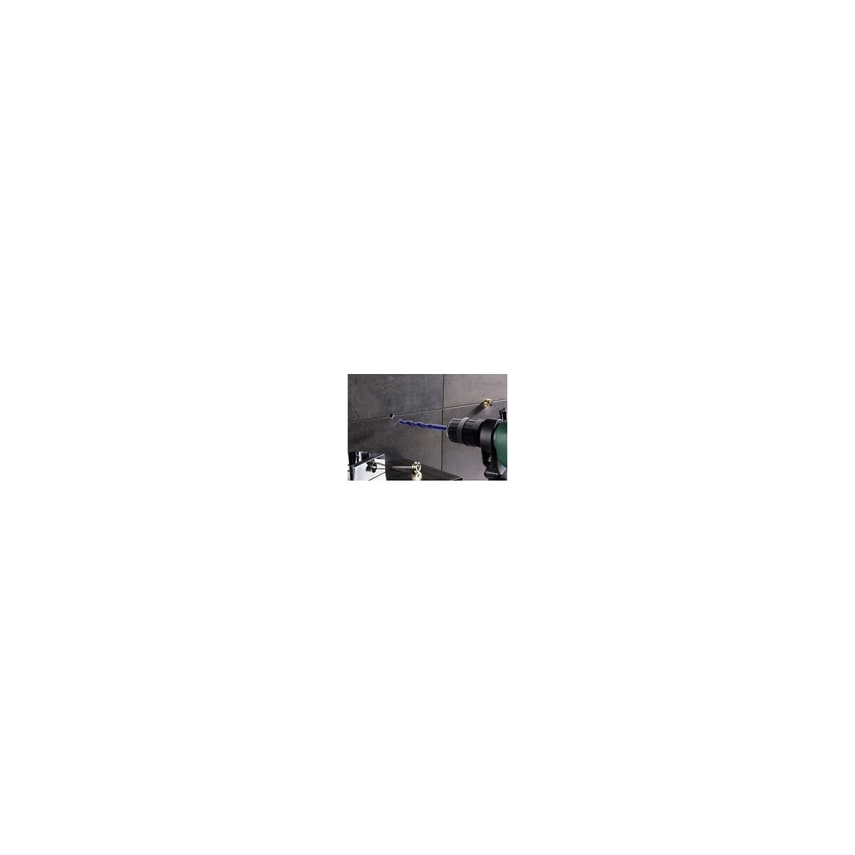 Mèche à grès cérame, au carbure, pointe titane-Wolfram TSM extra dure, soudée à de hautes températures, tranchants affûtées au diamant. Hélice usinée asymétrique assurant un transport optimal de la farine de perçage, pour toutes perceuses à percussion et perceuses rotatives. Couleur bleue, pour carrelages et grès cérame d'une résistance aux rayures de la catégorie 9, pour céramique et tuiles.