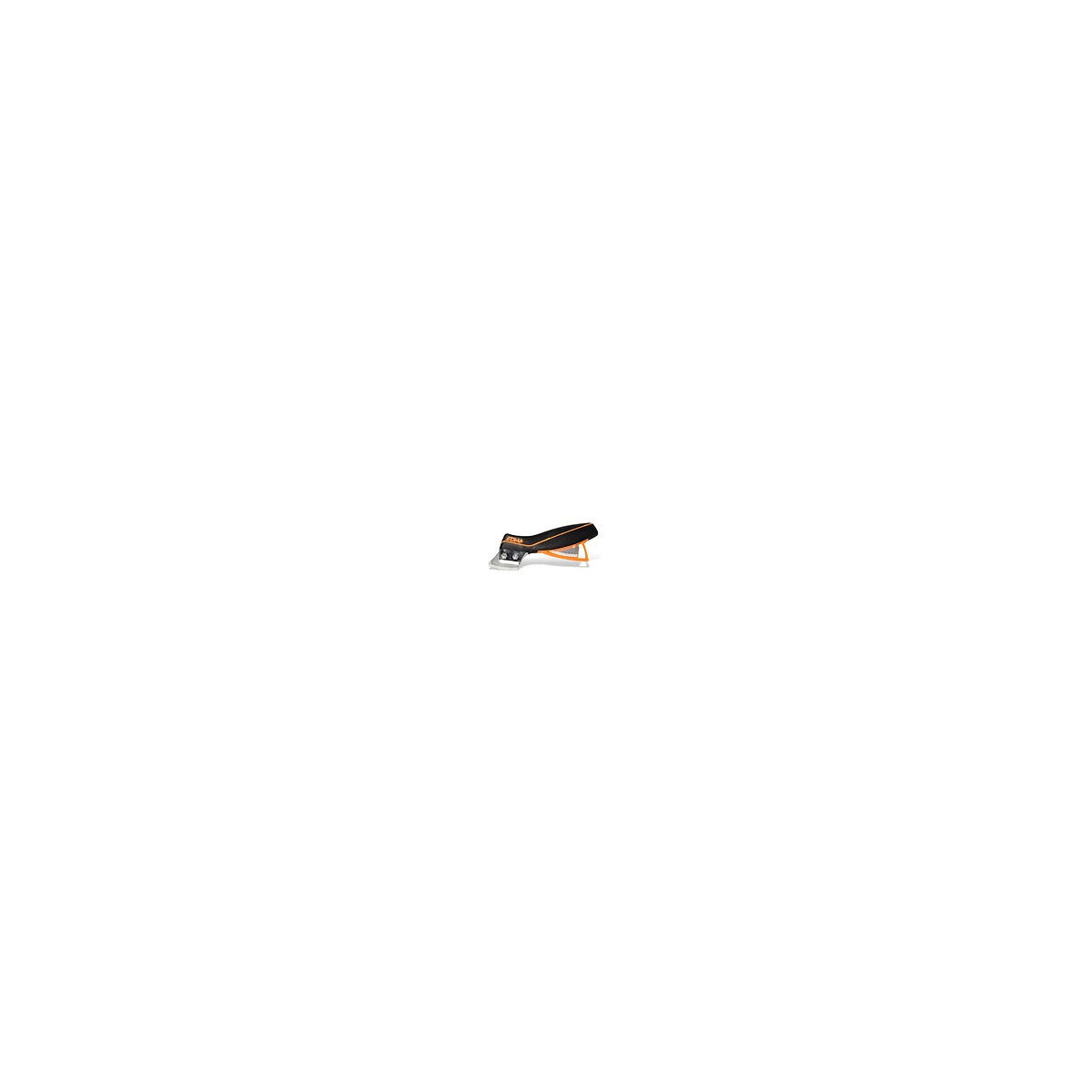 Lame inox. Monture polyamide renforcée de fibre de verre = léger et résistant. Manche ergonomique bi-matière.