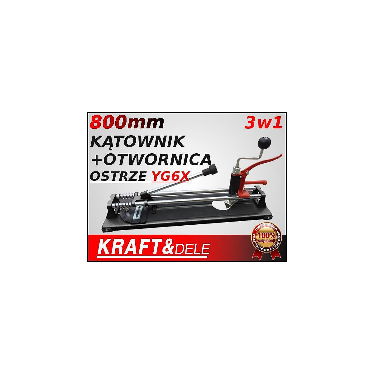 Le dispositif se compose d'une base stable faite d'une épaisse plaque d'acier recouverte d'une couche de micro-caoutchouc technique, de deux guides tubulaires parallèles et d'une unité de coupe coulissant le long de ceux-ci. Elle comprend un couteau circulaire de 16 mm de diamètre fait en carbure cémenté spécialement durci. Les guides contiennent également un outil de découpage à ressort pour découper des trous de ϕ 30 à ϕ 80 mm de diamètre. Grâce au biseau mobile fixé à la base, il est possible de couper des carreaux à n'importe quel angle. La conception robuste et résistante vous permet d'utiliser le dispositif pour les travaux de rénovation et de carrelage au niveau amateur et artisanal. La grande taille de la base permet de couper même les carreaux plus grands; CARACTÉRISTIQUES TECHNIQUES: Coupe-carrelage; Fonctions : découpe parallèle, découpe diagonale, découpe de trous; Longueur maximale de la coupe : 800 mm; Épaisseur de la coupe : 12 mm; Épaisseur de la base : 2.5 mm; Largeur de la base : 200 mm