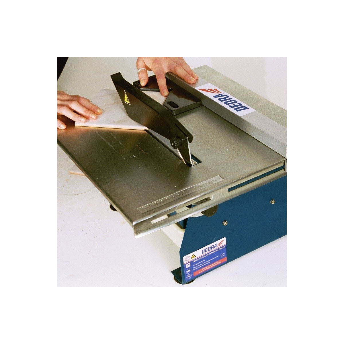 La coupeuse à carreaux avec lame diamantée est un produit de conception innovante qui permet de couper des carreaux céramiques de petite et moyenne taille pour murs ou sols. La machine permet de réaliser le découpage de base des carreaux de céramique - coupe en lamelles, la coupe en diagonale, le biseautage des bords., CARACTÉRISTIQUES TECHNIQUES: Puissance : 650 W, Tension d'alimentation : 230 V, Diamètre du disque (extérieur x intérieur) : 180 x 22,2 mm, Dimensions du plan de travail : 420 x 400 mm, Épaisseur maximale de coupe : 35 mm, Découpe en angle : oui, Fonctions : refroidissement du disque par barbotage, Poids : 15 kg