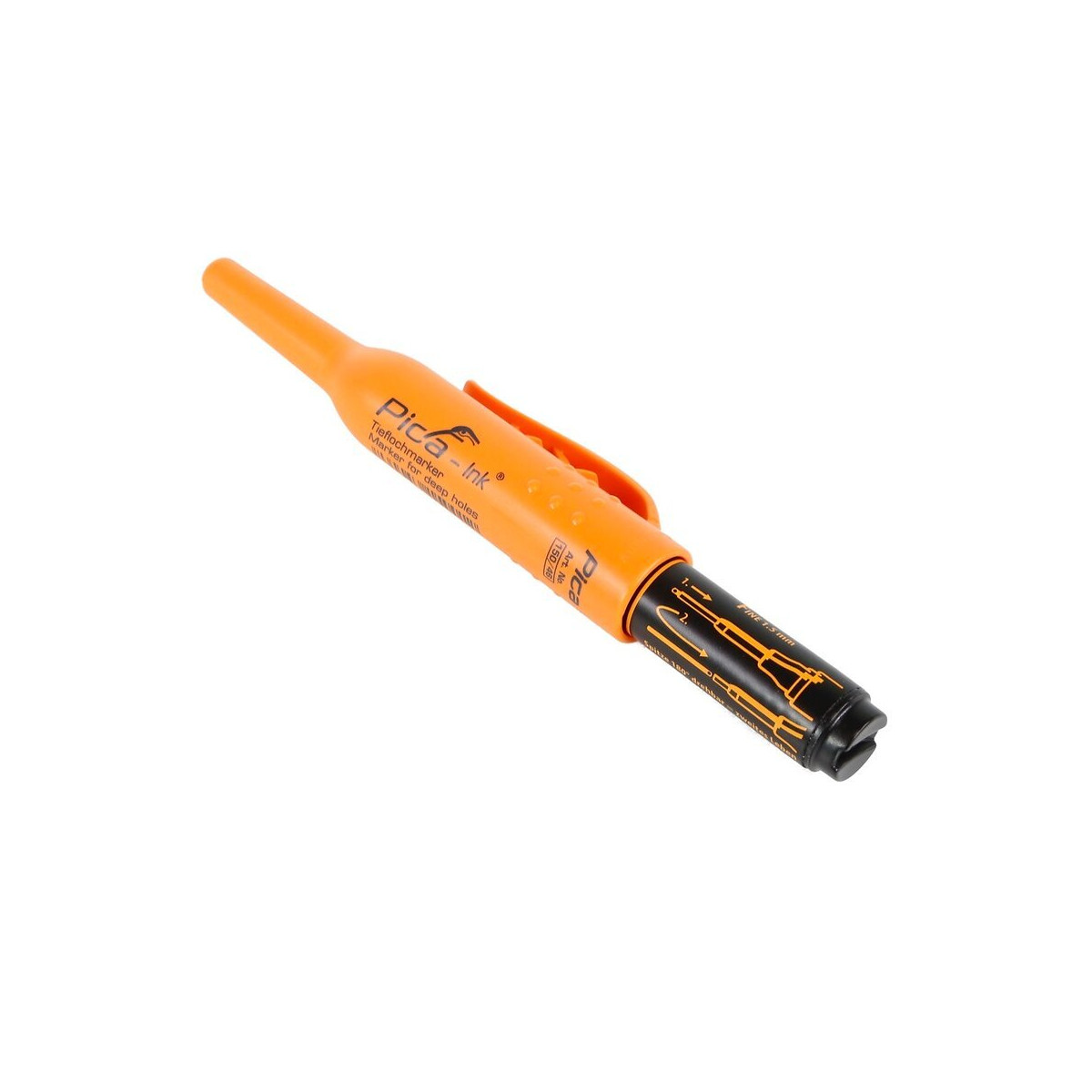 Contenu de la livraison: - 1x Pica INK Marqueur trous profonds - noir ( 150/46 ) Description du produit: Le marqueur noir à trous profonds INK de Pica est idéal pour les zones difficile d'accès. Il est imperméable sur presque toutes les surfaces sèches. Son protège-carquois pratique est doté d'un clip spécial pour une utilisation parfaite d'une seule main. L'encre permanente à base d'alcool est très facile à enlever des surfaces lisses avec de l'alcool et il peut néanmoins être conservée ouverte pendant 24 heures. Sa pointe télescopique en acier inoxydable, brevetée et auto-ajustable, garantit une performance d'écriture jusqu'à 3 fois supérieure en utilisant pleinement la longueur d'abrasion de 7 mm de la pointe en fibre au lieu de 2 mm. Son embout peut être tourné de 180° plusieurs fois et assure ainsi une "deuxième, troisième, ... vie". Pour ce faire, il suffit de repousser l'embout télescopique à l'aide d'une pince, de retirer la mèche de l'embout et de la faire pivoter de 180°, puis de la réinsérer et de pousser à nouveau l'embout télescopique vers l'avant. Spécifications techniques: Longueur : 150 mm Diamètre : 4,5 mm / 2mm / 1,5 mm Poids : 20g Recharge : encre permanente à base d'alcool