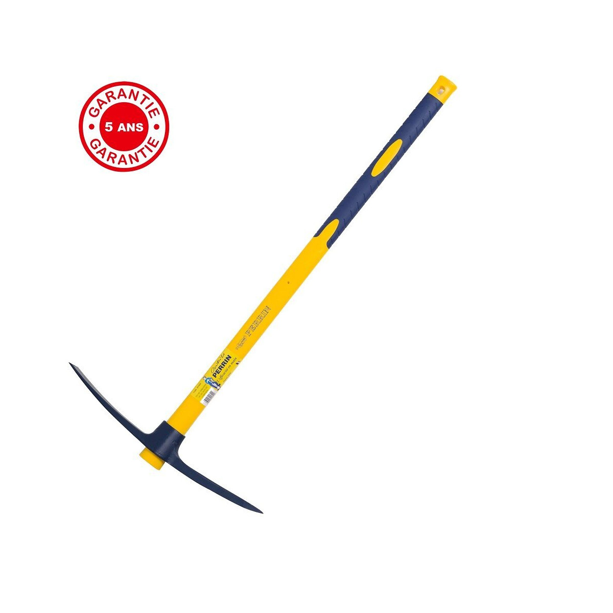 PIOCHE TERRASSIER OR 2 KG MANCHE COMPOSITE. Poids : 2,95Kg. poids fer : 2 kg. Matière : xc 48. Fabrication : forgé à chaud. Traitement thermique : trempé en entier. Dureté : 140 kg/mm². Finition : peinture bleu hydrosoluble non polluante. Marque : Outils PERRIN Référence Perrin : 201820 Garantie 5 ans La société Perrin est une société Familiale et Indépendante axée sur son savoir-faire pour garantir une fabrication FRANCAISE de qualité et compétitive, résultat d’une expérience de vrai fabricant implanté en Bourgogne depuis 1644.