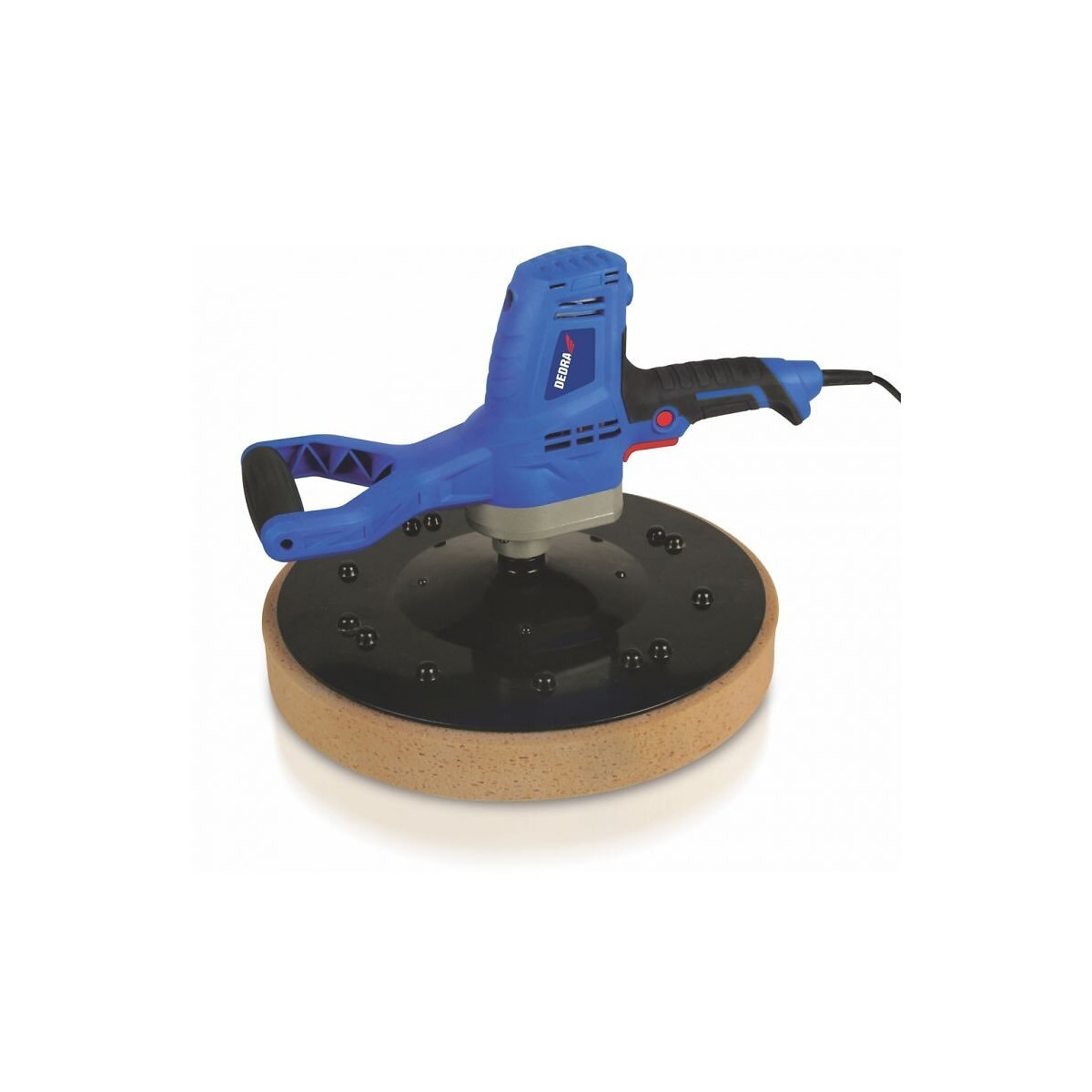 La truelle à plâtre est un appareil pratique permettant le traitement rapide et précis des surfaces murales. La truelle rend le travail plus facile et plus rapide et permet une qualité de travail bien supérieure à celle des outils à main traditionnels, CARACTÉRISTIQUES TECHNIQUES: Puissance : 710W, Tension : 230V, Vitesse : 110 tr/min, Longueur du cordon d'alimentation : 5m, Dimensions : 40x40x27mm, Verrouillage de l'interrupteur pour un fonctionnement en continu, Triple transmission, Grand confort de travail grâce aux poignées caoutchoutées, Fournie avec un disque en éponge et un disque en PVC