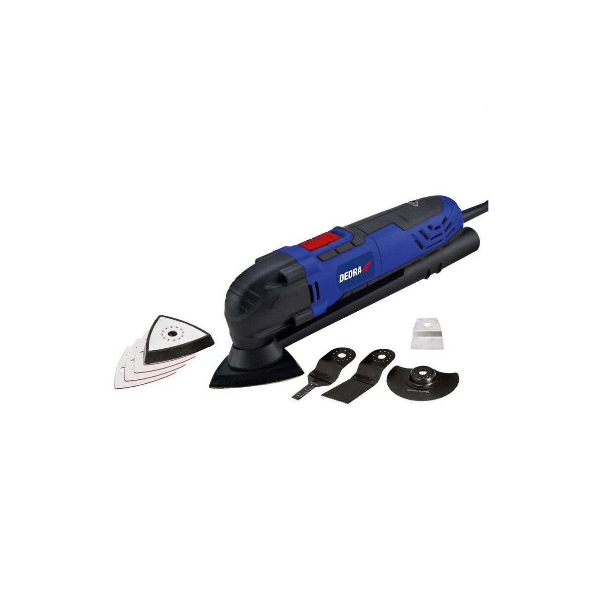 Outil multifonction adapté à divers travaux comme par exemple pour poncer, couper et gratter. Il est pratique et simple d'utilisation. Il est fourni avec les accessoires nécessaires pour une utilisation immédiate : une lame semi circulaire pour le bois, une lame pour le bois, une lame pour le métal, un grattoir, un plateau triangulaire avec des ouvertures et des feuilles abrasives triangulaires P40, P80, P100 et P120., CARACTÉRISTIQUES TECHNIQUES: Puissance : 250 W, Nombre d'oscillations : 11 000 - 20 000/min, Poids : 1,2 kg, La petite taille de l'appareil permet une bonne prise en main lors de son utilisation., Il peut être utilisé pour de divers travaux grâce aux nombreux accessoires qu'il possède., Le montage facile des accessoires simplifie son utilisation., La mallette de transport permet de ranger facilement l'appareil et les accessoires., Mallette de transport, Lame semi circulaire pour le bois, Lame pour le bois, Lame pour le métal, Grattoir, Plateau triangulaire avec des ouvertures, Quatre feuilles abrasives triangulaires P40, P80, P100 et P120